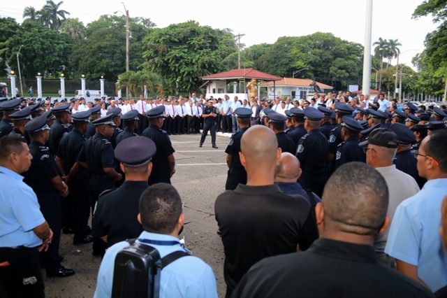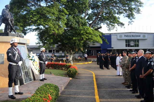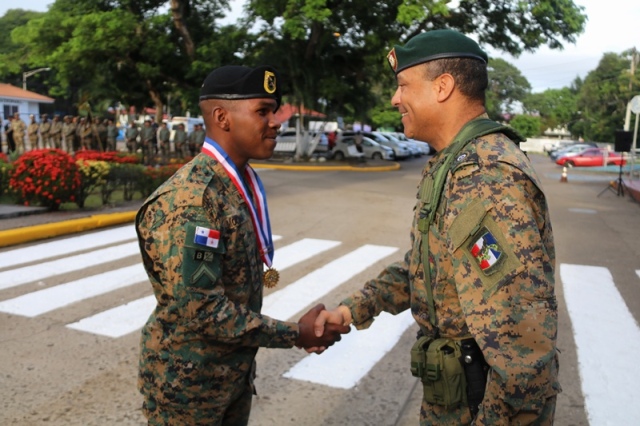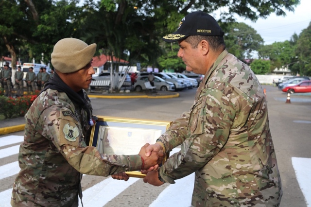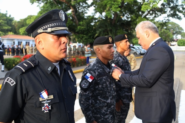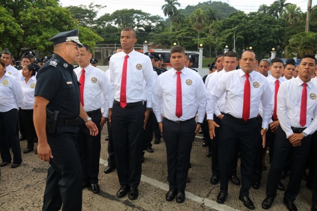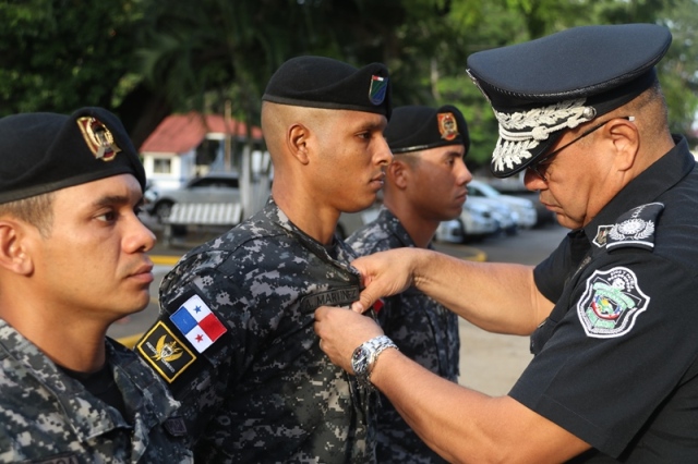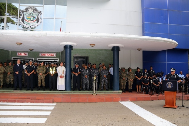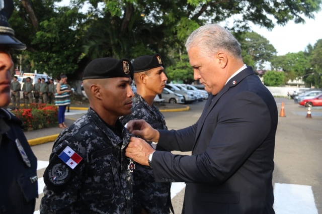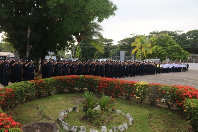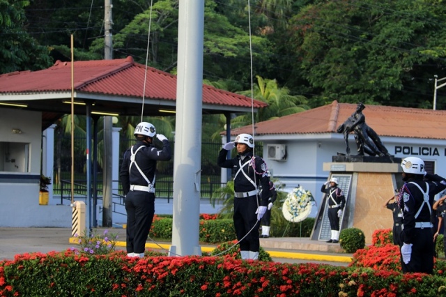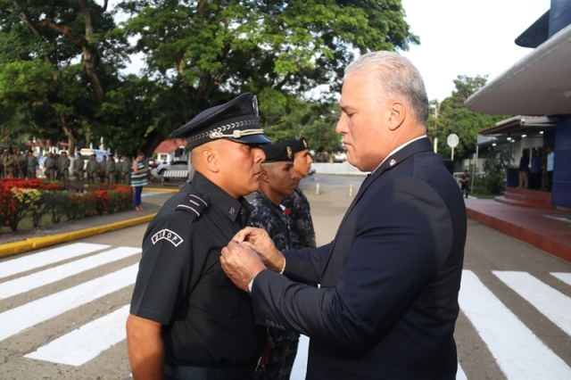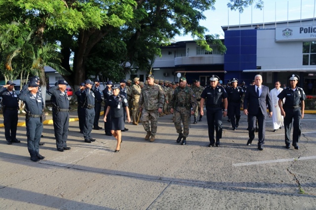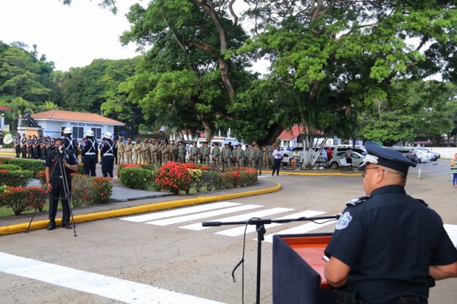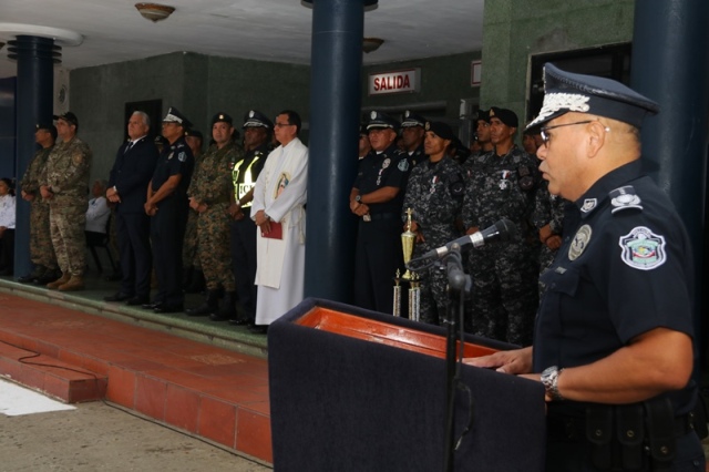 “Ustedes son la pieza más importante de esta Institución, son los hombres y mujeres que dan la cara día a día en las calles, brindando protección y seguridad a cada uno de los nacionales y extranjeros que habitan este país” expresó el Director General de la Policía Nacional, Jorge Miranda Molina. Su Excelencia Ivor Axel Pitti, Viceministro de Seguridad Pública, acompañó al Director General de la Policía Nacional, Jorge Miranda Molina, al Subdirector General Alexis Muñoz, miembros del Directorio Policial, además de directores y subdirectores de otros estamentos de seguridad del estado en el primer acto cívico desarrollado en las sede de la Policía Nacional en Ancón. En medio de la actividad se le otorgó la condecoración “Medalla Honor al Mérito” como reconocimiento y homenaje por parte de la Institución al contribuir al fortalecimiento de la imagen de la Policía Nacional, a las siguientes unidades policiales: Sargento 2, Josué Juárez, Cabo 2, Rigoberto Berroa, Cabo 2, Ariel Martínez, Agente Jairo Santos, Policía Nacional (PN), Sargento 1, Julián González, Cabo 1, Joaquín Ojo, Servicio Nacional Aeronaval (SENAN), y el Cabo 2, Luis Molina, Servicio Nacional de Fronteras (SENAFRONT), por su destacada participación en pruebas extremas y condiciones climáticas en la competencia de Fuerzas Comando 2019, desarrolladas en Chile. El Subteniente Franklin Méndez también se le impuso una medalla, por su participación en la 5ta. Edición Nacional de Bandas de Guerra, Escolta de Bandera Abierta de Cornetas, que se realizó en la Ciudad de México, adjudicándose el primer lugar de este evento. Finalmente, con las gloriosas notas de nuestro Himno Nacional se dio por clausurado el acto cívico.
