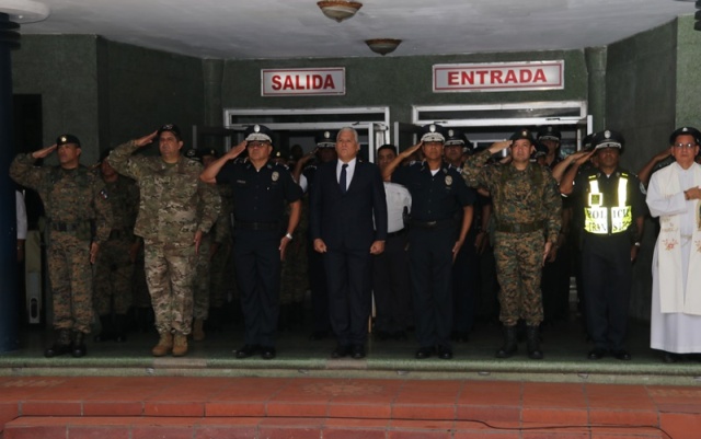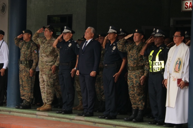 VICEMINISTRO DE SEGURIDAD PÚBLICA JUNTO AL DIRECTOR GENERAL PRESIDEN ACTO CÍVICO