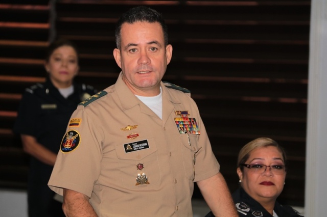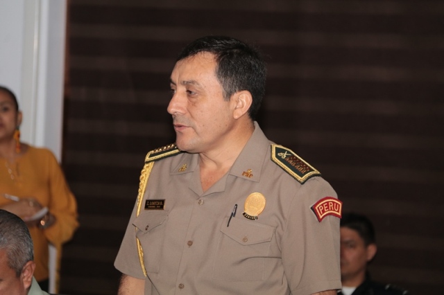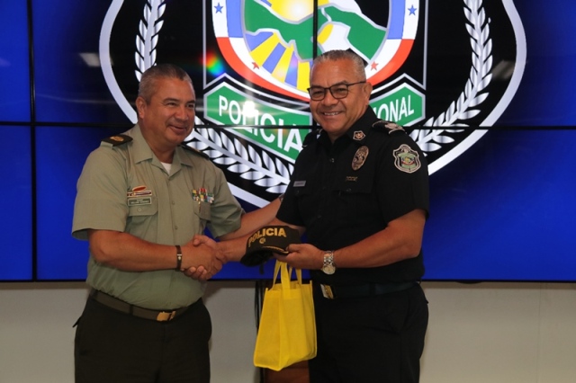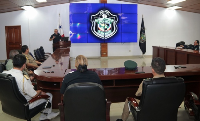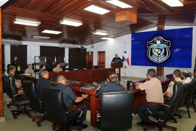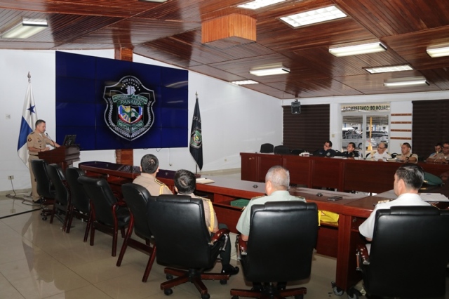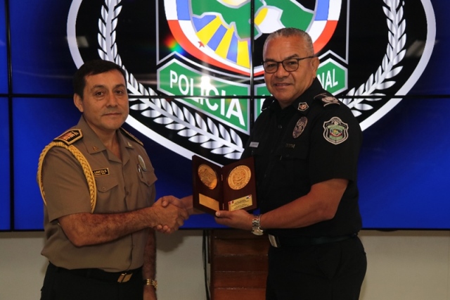 El director general de la Policía Nacional, Jorge Miranda Molina recibió en la sede de esta institución policiala los agregados policiales de Perú, Colombia, Ecuador, Chile y México con el objetivo de intercambiar experiencias e incrementar la cooperación y coordinación en pro de la seguridad. “A través del Departamento de Sedes Diplomáticas mantenemos colaboración con los demás cuerpos uniformados, con el compromiso de luchar contra el crimen organizado transnacional y las diferentes amenazas que afectan a nuestros países” manifestó el jefe de la Policía Nacional. La reunión se llevó a cabo en el salón de conferencia en la sede de la Policía Nacional en Ancón, allí el Director General estuvo acompañado por el subdirector general, Alexis Muñoz Cerpa; el director nacional de Operaciones, comisionado Domingo Espitia; secretaria general Emily Quintero y la directora nacional de Docencia comisionada Erly Miranda. Por su parte, el coronel Leonardo Valderrama, presidente de la Asociación de Agregados en nuestro país, destacó la importancia de esta reunión para trabajar con un solo fin, la seguridad de nuestros conciudadanos. Al final el encuentro, agregados policiales de Ecuador, Colombia y Perú hicieron entregaron de obsequios al nuestro Director General.