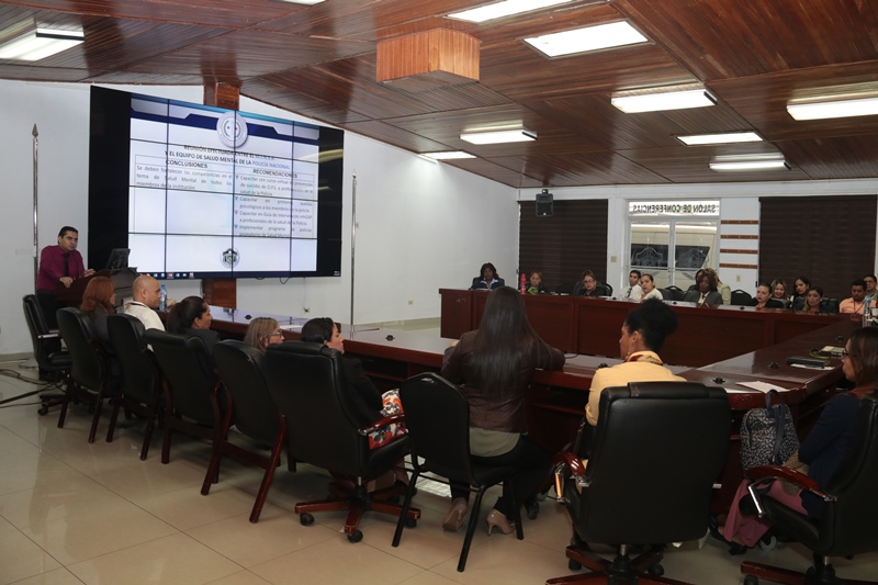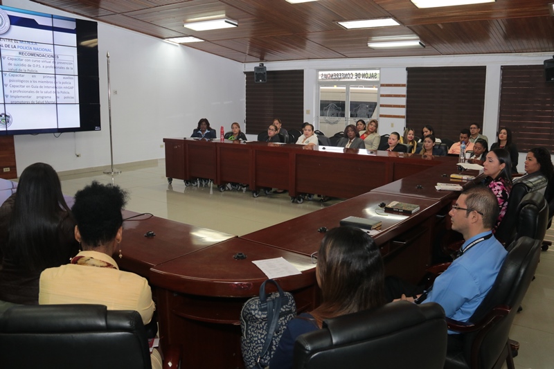 Psicólogos de las diferentes zonas policiales se reunieron, en el salón de conferencia de la Policía Nacional, con el fin de establecer competencias en el tema de salud mental de todos los miembros de la Institución. Entre los temas tratados está la capacitación sobre prevención a las unidades policiales y capacitarlos en primeros auxilios psicológicos, entre otros temas. Participaron en esta reunión psicólogos de universidades públicas y privadas además de otras entidades como la Fundación Relaciones Sanas, donde abordaron aspectos sustanciales, sobre programas, funciones y actividades por realizar en beneficio de las unidades y de la comunidad. Durante la reunión también estuvo presente psicólogos del Servicio Nacional de Fronteras y del Servicio Nacional Aeronaval, para reforzar conocimientos en materia de salud mental. |