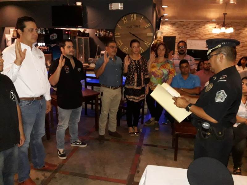 El primer programa “Restaurantes Vigilantes” de la provincia de Chiriquí, se inauguró en el Restaurante Beef, localizado en la ciudad de David. Correspondió al Teniente Hernán Beitia, encargado del servicio de seguridad ciudadana, juramentar a los miembros de la junta directiva del programa, quienes se comprometieron a trabajar de forma voluntaria, organizada y transparente, en alianza con la Policía Nacional. El licenciado Juan Carlos Muñoz, gobernador de la provincia, felicitó a la Policía Nacional y a los dueños de restaurantespor esta nueva alianza. Rafael Aguilar Pittí, principal coordinador y presidente del programa agradeció a la Policía por todas las reuniones previas que se dieron para que hoy esto fuera una realidad. Por su parte, el subcomisionado Luis Miranda, jefe de la 4ta. zona policial, reasaltó la labor de las unidades y agradeció el apoyo en esta lucha contra la delincuencia.
