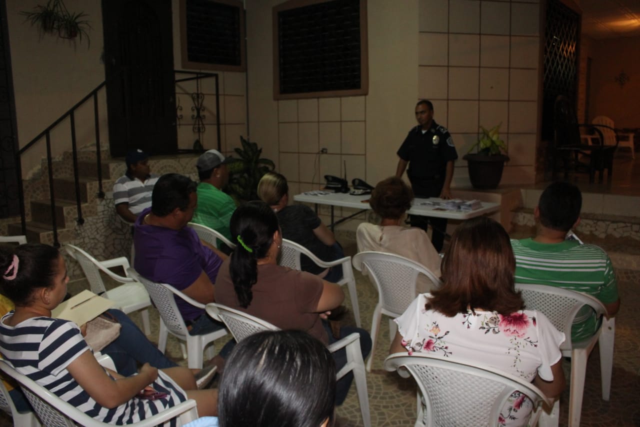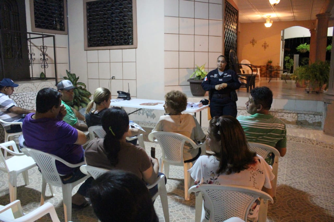 Unidades del Servicio de Seguridad Ciudadana de la Zona de Policía de Herrera, se reunieron con moradores de la urbanización Canta Rana, del distrito de Chitré, donde se realizó una docencia de seguridad para prevenir el delito y promover los programas comunitarios que lleva la institución, con el objetivo de integrarlos a Vecinos vigilantes. En el conversatorio estuvo el subcomisionado Franklin Arauz, jefe de la Zona de Policía de Herrera, compartiendo a los presentes las medidas residenciales que se deben adoptar para prevenir el delito. En la reunión se le entregó volantes con números telefónicos de la institución para mantener una interacción constante de la comunidad y la Policía Nacional, para reducirle espacio a las personas dedicadas al mal vivir. De igual manera se escogió un coordinador y subcoordinador, como representante de la comunidad, para dar inicio a la organización de la urbanización y así comenzar el proceso de integrar este sector al programa de Vecinos vigilantes.