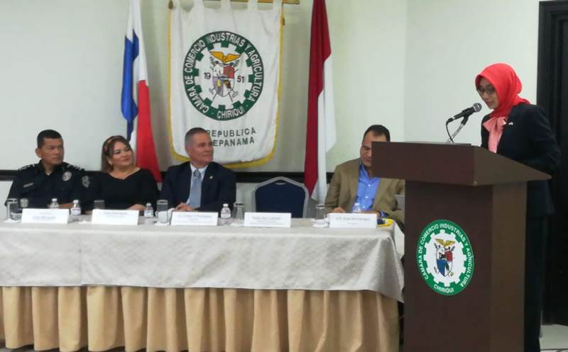 El jefe de la 4ta. Zona Policial de Chiriquí, subcomisionado Luis Miranda participó en una reunión, realizada en las instalaciones de la Cámara de Comercio Industrias y Agricultura de Chiriquí (Camchi), organizada por la Embajada de la República de Indonesia. Al hacer uso de la palabra, el jefe policial expresó que en recientes declaraciones de representantes del Ministerio Público se dejó claro la disminución de delitos de impacto, entre ellos los homicidios. Nuestras alianzas con la comunidad, con distintitas asociaciones y agrupaciones comerciales, están rindiendo sus frutos. La seguridad es un asunto de todos. Continuaremos con nuestra ardua labor para seguir disminuyendo los delitos, concluyó diciendo el subcomisionado Miranda. En este encuentro participaron, además, la vicealcaldesa del distrito de David, Yansi Rodríguez; por la Camchi, Felipe V. Rodríguez; la licenciada Yomi Ayú Lestari, ministra Consejera de la mencionada embajada; el representante Jorge Montenegro del corregimiento de Chiriquí. |