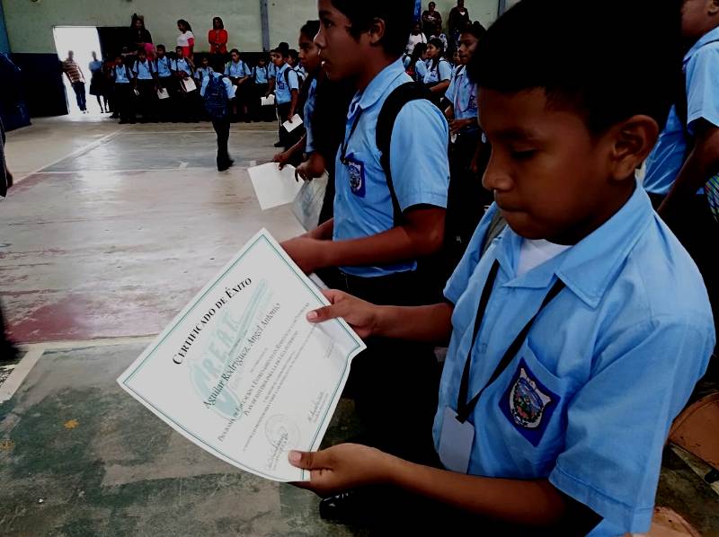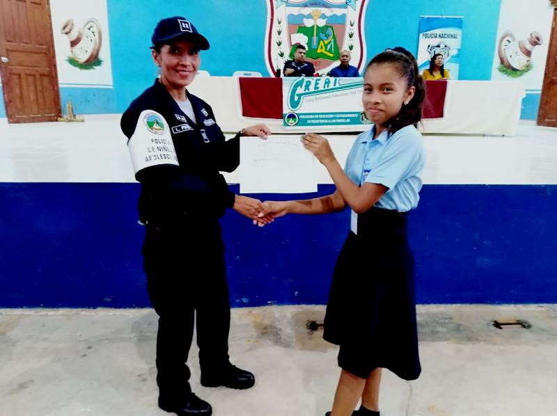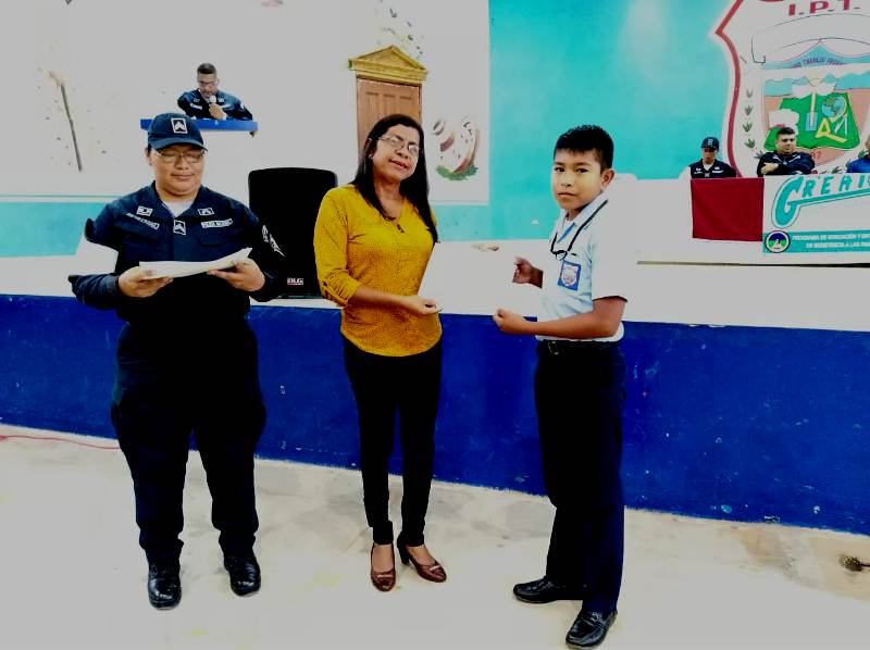 Estudiantes del Instituto Profesional y Técnico Leónidas Pinzón de Grimaldo en el distrito de Penonomé, culminaron con éxito el programa de Educación y Entrenamiento en Resistencia a las Pandillas (G.R.E.A.T.), impartido por unidades de Niñez y Adolescencia de la 2da. Zona Policial. La Teniente Lindeth Pineda encargada de la Sección de Niñez y Adolescencia de la Zona Policial de Coclé, destacó que para este 2019, han logrado finalizar el programa preventivo 15 planteles educativos, beneficiándose estudiantes, padres familias y educadores. La ceremonia contó con la presencia del subcomisionado Jaime Serracin, ejecutivo de la Zona Policial, el capellán Rogelio Samsun de las Capellanías Unidos de las Américas, el director encargado del plantel educativo el profesor Edilberto Ortega, la licenciada Yovana González de la Fiscalía de Niñez y Adolescencia, la licenciada Elcira Palacios directora del Ministerio de Desarrollo Social. La estudiante Karen Mares del VIII° B, agradeció de parte de sus compañeros a la Policía Nacional, por el tiempo dedicado principalmente a la Cabo Cindy Gutiérrez, quien les enseño como actuar ante personas que se dedican al mal vivir y tomar una buena decisión diciendo. |
