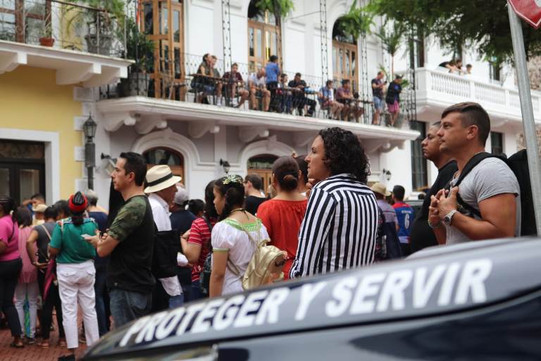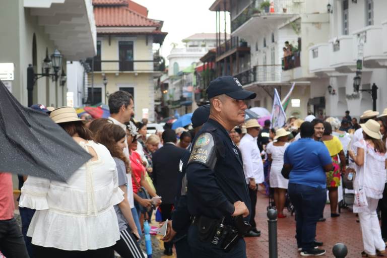 Unidades de la Policía Nacional brindaron la seguridad durante el desfile de polleras y montunos, conmemoración de los 500 años de Fundación de la Ciudad de Panamá, que se llevó a cabo en el Casco Antiguo del corregimiento de San Felipe. El Mayor Ernesto Robles reveló que se desplegaron unidades del Servicio Policial de Turismo quienes en conjunto con unidades del Servicio de Protección Institucional brindaron la seguridad a turistas y nacionales que festejaron con los panameños esta histórica fecha. Al festejo de los panameños se unió el embajador de Francia en Panamá Brice Roquefeuil quien agradeció la labor que realiza la Policía Nacional a través del Servicio Policial de Turismo en el desarrollo de este importante aspecto de la economía nacional. “Desde que montamos el Metro, hubo mucha presencia policial la cual se hizo visible hasta llegar al Casco Viejo. Agradezco la labor que realizan a favor de nuestra seguridad”, dijo por su parte la señora Beatriz Palacios. El Profesor Fernando Góngora, Director del Conjunto Típico denominado “Caprichos Panameños”, destacó la presencia policial a lo largo y ancho de la ruta del desfile y agradeció el esfuerzo realizado por la primera institución de seguridad por la labor realizada. |