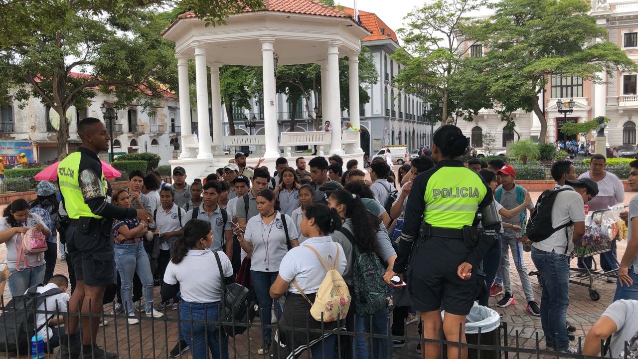 El subteniente Crisanto Foster de la Dirección Nacional de Policía Ambiental, Rural y Turística, compartió sus conocimientos como guía en el Casco Antiguo, a más de 80 estudiantes del Centro Educativo de Artes Diversificada, de la ciudad de Panamá. El mismo destacó los atractivos que están asentados alrededor de la Plaza de Francia, la Plaza Bolívar, Plaza de La Catedral y la Plaza Herrera. Así como la historia y la riqueza arquitectónica del área. Esta acción del oficial Foster es parte de la labor policial enmarcada en el objetivo estratégico establecido en el nuevo modelo de Policía Comunitario. Los jóvenes de este centro educativo manifestaron su alegría y entusiasmo por ser recibidos por la Policía Nacional; además de sentirse protegidos durante su recorrido en el Casco Antiguo. La Policía Nacional de Panamá en busca de ese acercamiento con los visitantes de este lugar turístico, continúa innovando y brindando no solo seguridad, sino importante información histórica.