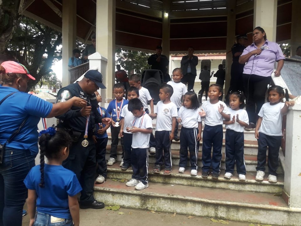Unidades de la Policía Nacional de servicio en Isla Colón de la provincia de Bocas del Toro, en coordinación con el Ministerio de Educación, por tercer año consecutivo realizaron las olimpiadas de pre escolar, con la participación de 150 atletas entre las edades de 4 y 5 años de edad, de las escuelas de Isla Colon, Isla Carenero, Isla San Cristóbal, Isla Solarte, Bahía Onda y Boca del Drago. La 1ra. Zona Policial de Bocas del Toro y sus patrocinadores hicieron entrega de medallas, trofeos y certificados de regalos a los atletas ganadores en disciplinas como maratón, carrera de 100 metros planos, carreras con obstáculos y carreras de relevo. Las competencias se realizaron del parque Simón Bolívar de la Isla Colón y luego de entregadas las medallas a los ganadores, se ofreció un brindis para todos los presentes. |