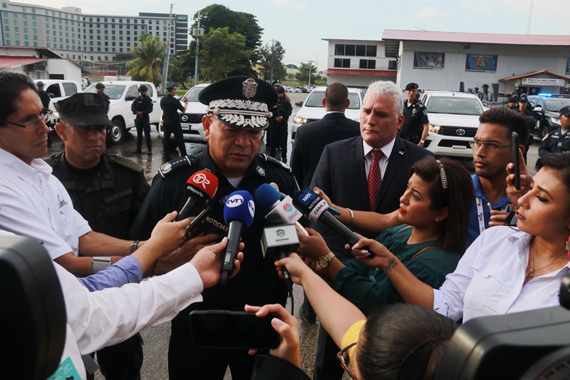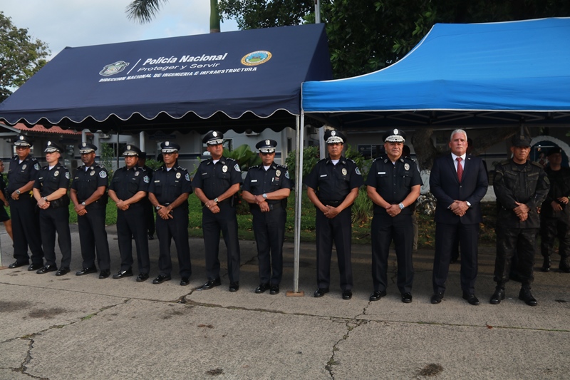 Con el objetivo de contribuir a la labor que realiza la Policía Nacional, la Presidencia de la República hizo entrega de 40 vehículos, en una ceremonia realizada este jueves 22 de agosto, en la sede de la institución ubicada en el corregimiento de Ancón. Se trata de camionetas 4x4 que serán distribuidas a las diferentes zonas policiales e iniciarán patrullaje a partir de su entrega, para fortalecer las acciones preventivas y operativas en todo el país. En este acto estuvo presente el viceministro de Seguridad Pública, Ivor Pitti junto al director general de la Policía Nacional, Jorge Miranda Molina. El director general Jorge Miranda Molina, agradeció el respaldo brindado, “esta nueva flota vehicular contribuirá a brindar un servicio adecuado y eficiente a la ciudadanía, enfocado en el acercamiento con la comunidad, como pilar de nuestra filosofía de trabajo”. Igualmente, se dio el lanzamiento de la Fuerza Urbana de Rápida Intervención (Alpha) que contribuirá a garantizar la seguridad de los panameños. La Policía Nacional apuesta a fortalecer la relación entre los ciudadanos y los policías. El trabajo que se realiza se enfoca en siete objetivos, entre los cuales se encuentra transformar la cultura de servicio. |