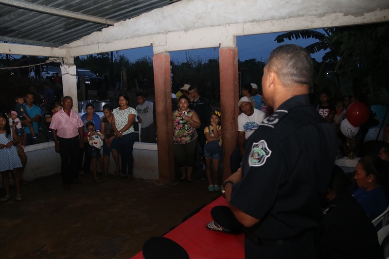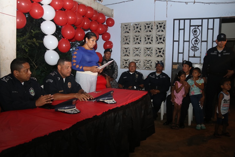 Con la asistencia y participación de moradores de más de 50 familias de las comunidades de La Bendición y La Primavera ubicadas dentro del Corregimiento Ernesto Córdoba Campos de Alcalde Díaz, se inauguró en horas de la noche del miércoles el programa Vecinos Vigilantes en este sector. En la actividad estuvo el jefe de la Zona Policial Norte Dorian Espitía, además del comisionado Clemente Buitrago, Ejecutivo de la Zona, y la mayor Margarita González así como la señora Yissel Pérez, coordinadora comunitaria del programa Vecinos Vigilantes, entre otros líderes y moradores de las citadas comunidades. Al hacer uso de la palabra el comisionado Dorian Espitía detalló el beneficio que se ha logrado a través de la implementación de programas como Vecinos Vigilantes además de los programas de desarrollo humano GREAT y DARE que han sido muy efectivos en la orientación y guía para niños y estudiantes en las escuelas, a fin de alejarlos de los peligros del acoso escolar (bullying), el pandillerismo y el consumo de alcohol y drogas. El comisionado Clemente Buitrago ejecutivo de la Zona Policial Norte expresó el compromiso de la institución de trabajar mancomunadamente con las comunidades dentro del marco de la implementación de la Policía Comunitaria. La señora Yissel Pérez, coordinadora del programa Vecinos Vigilantes, agradeció el esfuerzo que realiza la Policía Nacional por llevarles estos programas a fin de lograr un acercamiento con los moradores de esta región. |
