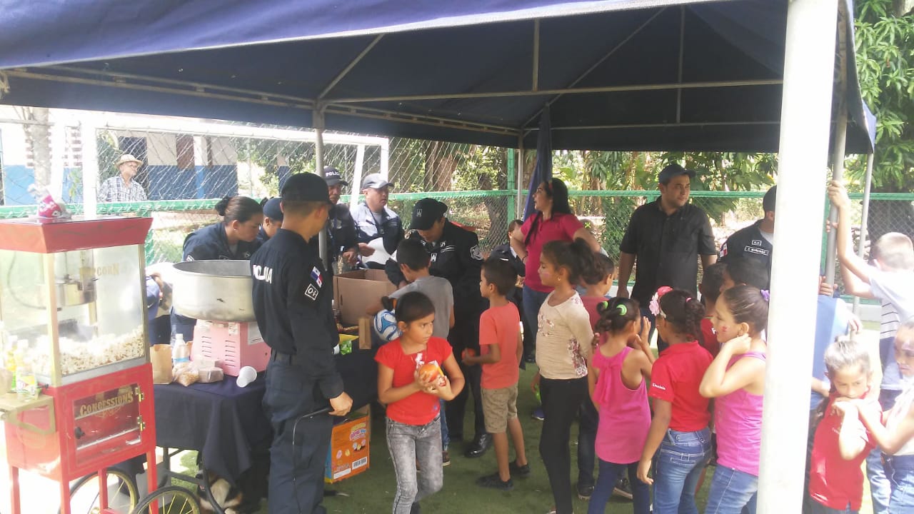 Unidades de la Zona Policial de Herrera compartieron con estudiantes y padres de familia de la escuela primaria de la comunidad de Sabana Grande del distrito de Pesé, quienes pasaron momentos agradables, junto a los miembros del orden público. En la actividad estuvo el subcomisionado, Franklin Araúz, jefe de la zona policial acompañado de oficiales, quienes interactuaron con los alumnos de esas escuela con la finalidad de fortalecer los lazos de comunicación con los pequeños y adultos. Los uniformados repartieron golosinas como algodones de azúcar y palomitas de maíz y compartieron con los más pequeños que se divirtieron con pintas carita, presentación Canina y juegos de esparcimiento, que alegraron el ambiente de todos. |
