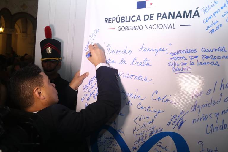 El director general de la Policía Nacional, Jorge Miranda Molina participó en el encendido de luces que organizó el Despacho de la Primera Dama en la Presidencia de la República, con motivo de la campaña “Corazón Azul” contra la Trata de Personas. En el acto estuvo presente el presidente de la República, Laurentino Cortizo Cohen junto a la primera dama Jazmín Colón de Cortizo; el vicepresidente José Gabriel Carrizo Jaén y su esposa Julieta Spiegel de Carrizo; además de representantes diplomáticos, miembros del gabinete y directores de los diversos estamentos de seguridad. La primera dama de la República, Jazmín Colón de Cortizo destacó la importancia de esta campaña, que renueva la lucha contra este flagelo que afecta principalmente a mujeres y niños, recordamos el derecho fundamental de la libertad. La Policía Nacional de Panamá mantiene su compromiso en combatir los delitos, incluido la trata de personas, cuyas actividades no solo vulneran la dignidad de las personas sino que además deja profundos traumas físicos y emocionales en las víctimas. |
