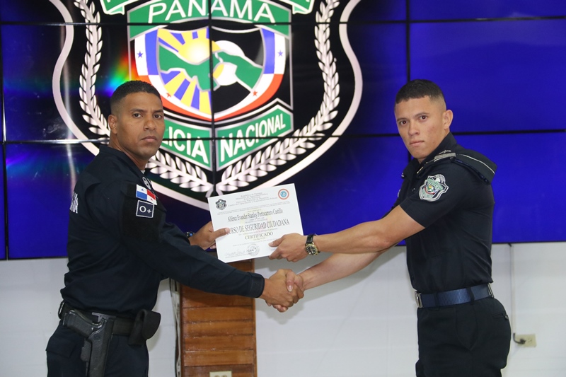 Unos 115 alféreces de la promoción 19 de la Escuela de Oficiales de Policía (ESOPOL) Dr. Justo Arosemena, recibieron sus certificados al culminar el curso Seguridad Ciudadana, enfocado en el modelo de Policía Comunitaria. Este curso fue organizado por la Dirección Nacional de Operaciones y la Dirección Nacional de Docencia, con el objetivo desarrollar las capacidades de los futuros oficiales, entre estas, la de poder comunicar ideas y liderar. La ceremonia fue presidida por el director general de la Policía Nacional, Jorge Miranda Molina, quien destacó que la capacitación cumple con el objetivo de transformación institucional, hacia una Policía Comunitaria, como filosofía de trabajo que permite fortalecer la labor y anticipar los escenarios en los diferentes sectores. Junto a este grupo, también recibieron sus certificados dos oficiales egresados en el extranjero. Durante la jornada académica se elaboraron dinámicas teórico-prácticas sobre deontología profesional, derechos humanos, habilidades comunicativas, principios básicos de actuación policial, base doctrinal de seguridad ciudadana, filosofía Preventiva y conocimiento de buenas Prácticas de Policía Comunitaria. |