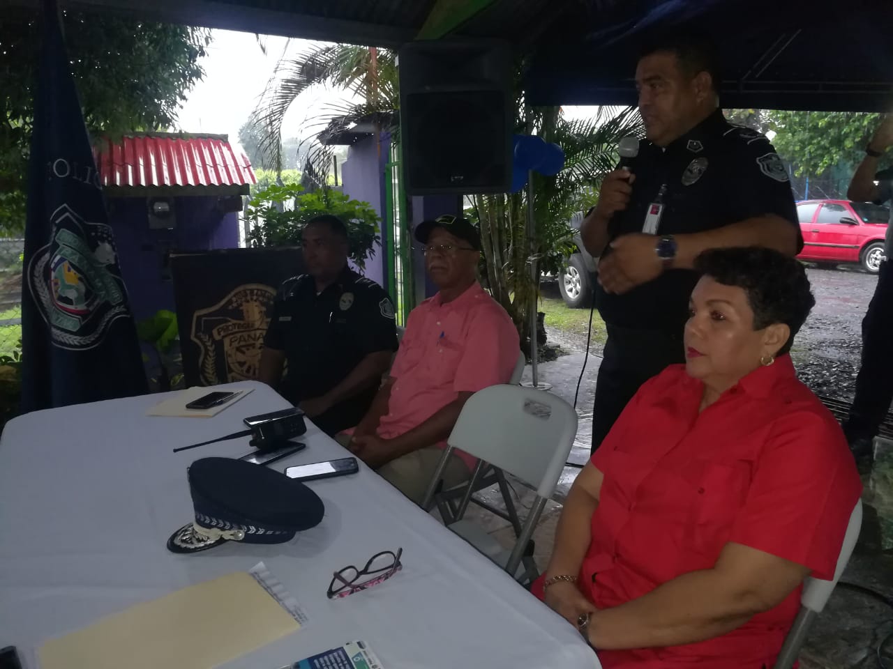 Nuestras unidades de la Zona Policial de Chiriquí junto a residentes de La Sabana, en el corregimiento de Pedregal, distrito de David, reinauguramos el programa Vecinos Vigilantes. Esta actividad busca consolidar estos programas preventivos en la provincia y en todo el país, como parte del Modelo de Policía Comunitaria. La señora María Rodríguez, presidenta de Vecinos Vigilantes en el mencionado sector, agradeció a los miembros de la Policía Nacional por este acercamiento que integra a la comunidad en la prevención de los delitos. El teniente Renzo Becerra, encargado del departamento de Seguridad Ciudadana fue el responsable de juramentar a los integrantes de la junta directiva, seguido de la develación del letrero, caracterizado por el ojo vigilante. En la ceremonia estuvieron presentes oficiales de la Policía Nacional, autoridades locales, residentes y líderes comunitarios. |