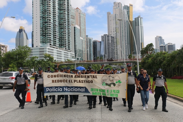 La Policía Nacional, a través de la Dirección Nacional de la Policía Ambiental, Rural y Turística respaldó la caminata “Trae tu Vaso, Reduce el Plástico”, que se realizó este viernes 27 de 2019 en la Cinta Costera, en conmemoración al Día Internacional de la Conciencia Ambiental. La actividad que fue organizada por el Ministerio de Ambiente permite sensibilizar y educar a la población panameña, sobre la importancia de cuidar el medio ambiente con acciones que se pueden realizar durante todo el año, como reutilizar materiales. Este evento que se desarrolló de manera simultánea a nivel nacional, reunió a autoridades gubernamentales, funcionarios de entidades públicas y privadas, estudiantes de diferentes centros educativos, voluntarios ambientales y público en general.