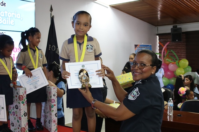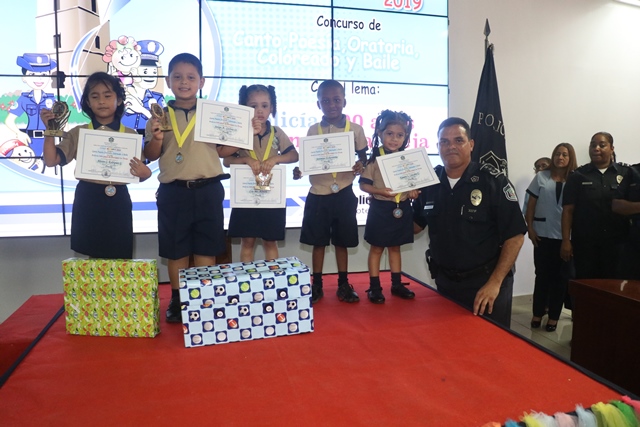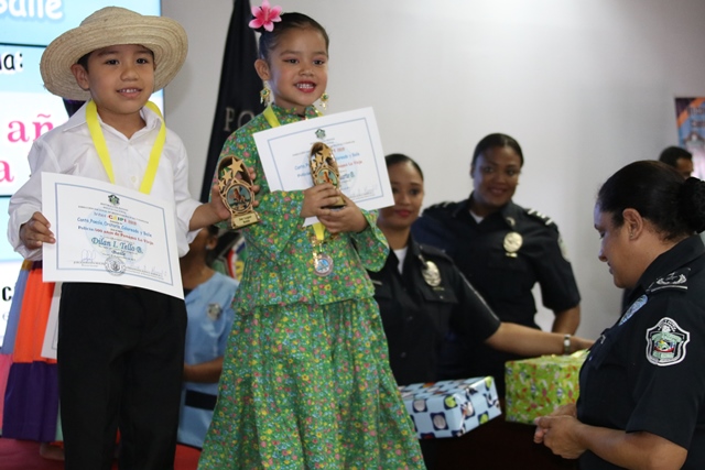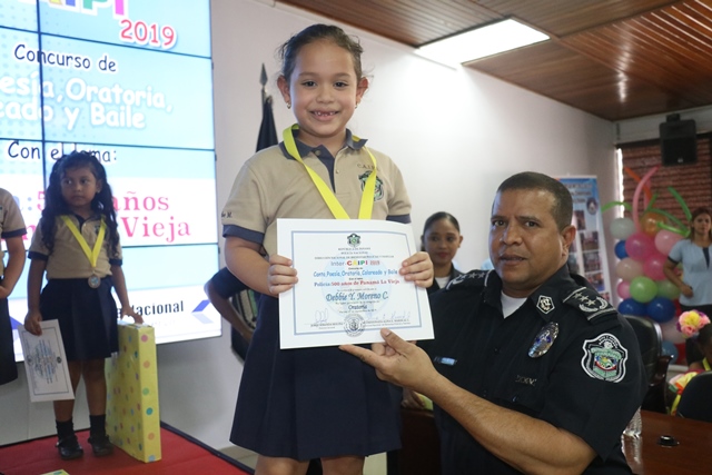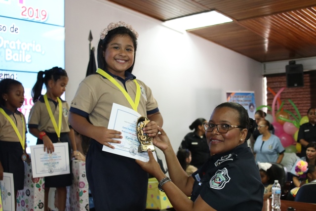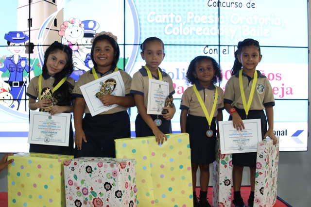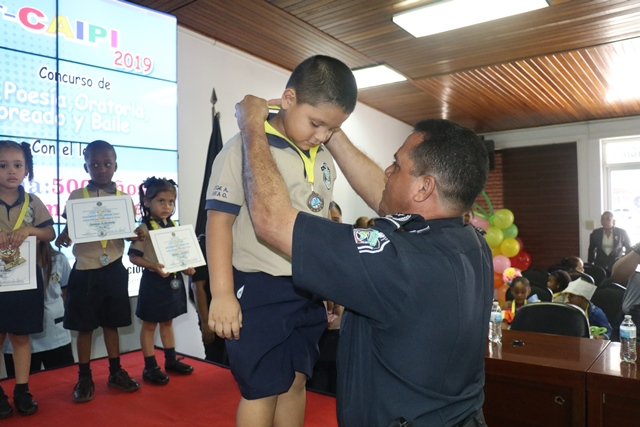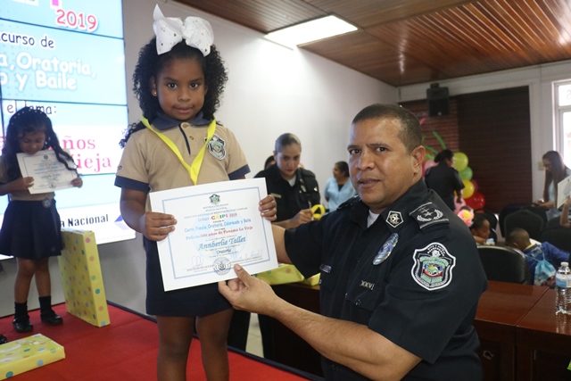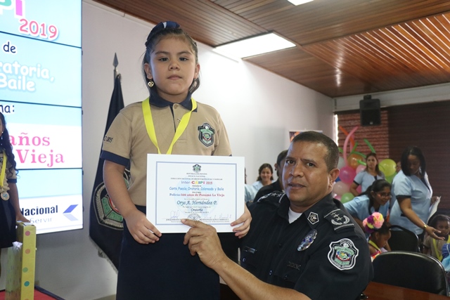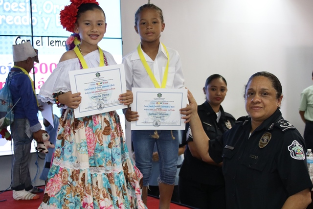 Los niños de los Centros de Atención Integral a la Primera Infancia (CAIPI), de la Policía Nacional demostraron su talento en el Inter-Caipi 2019, con el lema “Policía: 500 años de Panamá La Vieja”. En este evento cultural, que reúne a los pequeños que cursan estudios en los niveles de maternal, pre jardín y jardín, resultaron ganadoras las niñas Orys Hernández y Alisson Rodríguez, en las categoría oratoria y poesía respectivamente; ambas representantes del Caipi Mi Alegría de Veraguas. Por su parte, el pequeño Emmanuel Martínez, de Los Pininos Nueva Generación de La Chorrera se llevó el primer lugar en coloreado, mientras que en canto sobresalió Cristel Delgado, de la provincia de Veraguas. Luis Bonilla y Elkiriam Pineda, ambos del Caipi Mi Alegría de la provincia de Veraguas se llevaron el primer lugar en la categoría baile. “Este es el resultado del aprendizaje de los estudiantes y la labor de los docentes. Felicitamos a todos estos niños y niñas que son grandes ganadores cada uno en sus diferentes categorías”, dijo la comisionada Alina Mariscal, jefa de la Dirección Nacional de Bienestar Policial y Familiar. Mariscal destacó que con estos eventos se dota a los niños de las habilidades que le permitan desarrollar el lenguaje y otras facetas que potencien su talento. Al final de este concurso los niños fueron premiados con medallas, certificados y regalos por su destacada participación. |