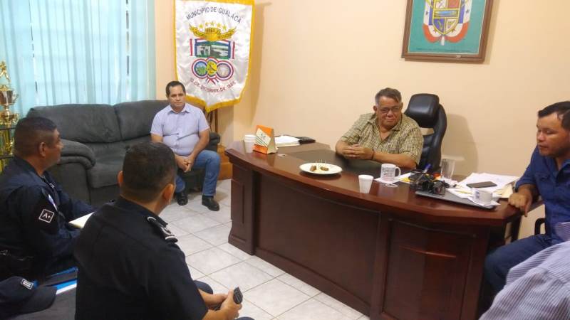 El jefe de la Zona Policial de Chiriquí, subcomisionado Luis Miranda, junto a su equipo de trabajo se reunió con el Alcalde del distrito de Gualaca, Luis Manuel Estribí, con la finalidad de coordinar estrategias de seguridad. En el encuentro se acordó poner en marcha acciones, que respaldan la labor que realiza la Policía Nacional en la provincia, como la implementación de la Policía Comunitaria. Con estas reuniones se fortalece la alianza entre las autoridades municipales y la Policía Nacional. |