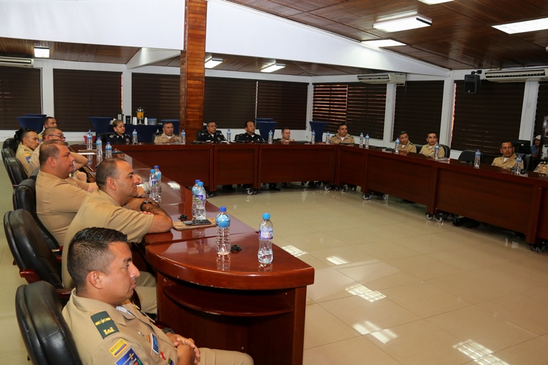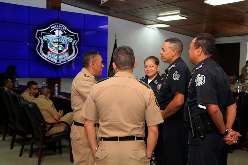 La sede de la Policía Nacional recibió la visita geoestratégica del Curso de Estado Mayor de la Escuela Superior de Guerra de Colombia para intercambiar experiencias en el ámbito de la seguridad regional y fortalecimiento de las relaciones bilaterales. El subdirector general de la institución, Alexis Muñoz junto a miembros del directorio, le dio la bienvenida a esta delegación comandada por el señor Brigadier General Jorge Hernando Herrera Díaz. Durante el encuentro que se dio en el salón de conferencias se destacó la historia sobre la creación de la Policía Nacional de Panamá, los programas preventivos y la implementación del modelo de Policía Comunitaria. El señor Brigadier General, Jorge Hernando Herrera Díaz dijo que esta visita se da con el ánimo de hacer un intercambio de ideas y conocimientos, sobre temas de interés para ambos países. “Es grato conocer el buen desarrollo y la historia de la Policía Nacional, la amplitud de todas sus tareas para beneficio de la seguridad de los panameños”, puntualizó Herrera Díaz. Por su parte, el subdirector general, Alexis Muñoz destacó la estrecha colaboración y lazos de amistad entre Panamá y Colombia, y que a través de sus organismos de seguridad se fortalece la cooperación en materia de seguridad. |