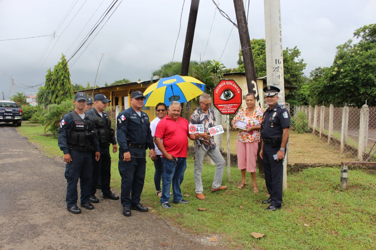 Con la instalación de los letreros y logos distintivos, los residentes de la calle A, en el Encanto del distrito de Chitré, se integraron a nuestro programa de Seguridad Ciudadana “Vecinos Vigilantes”. El subcomisionado Rolando Alonso, jefe de la zona policial de Herrera estuvo presente en esta actividad junto a las unidades del Servicio de Seguridad Ciudadana, quienes conversaron con los asistentes. La señora Ernestina Pérez, líder y coordinadora comunitaria dijo que esta es una de las maneras que puede la comunidad colaborar y respaldar la labor de la Policía Nacional. Nuestros uniformados mantienen el acercamiento en las comunidades, con el objetivo de ampliar los programas preventivos a lo largo y ancho de la geografía nacional.