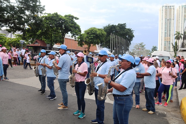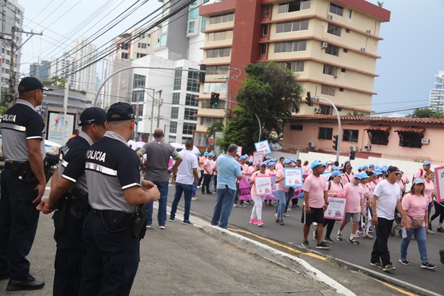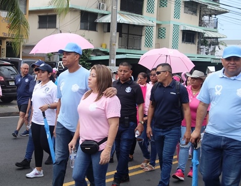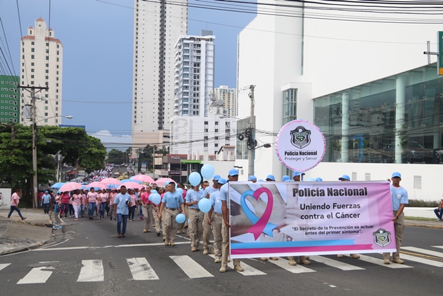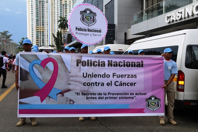 Bajo el lema "Uniendo fuerzas contra el cáncer", nuestro equipo de uniformados y miembros no juramentados, participó en la caminata en apoyo a la Campaña de la Cinta Rosada y Celeste. El evento organizado por el Despacho de la Primera Dama, Yazmín Colón de Cortizo contó con la asistencia de instituciones gubernamentales y organizaciones privadas. Con pancartas alusivas, el recorrido inició en el Centro de Convenciones Atlapa hasta el Parque Recreativo Omar, donde se presentaron bandas musicales y animaciones infantiles. “Nos unimos a esta campaña exhortando a los ciudadanos a realizarse las pruebas a tiempo", dijo el subdirector general, Alexis Muñoz, quien encabezó la delegación de la institución. Cada año la Policía Nacional se une a la cruzada que salva vidas, con acciones para crear conciencia en la población panameña sobre el tema. |