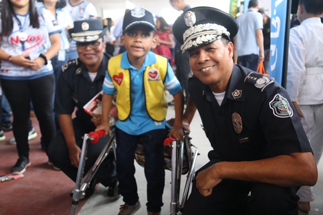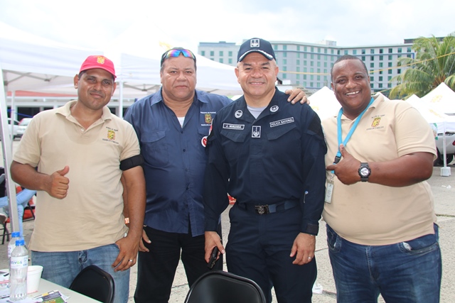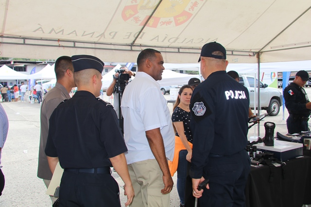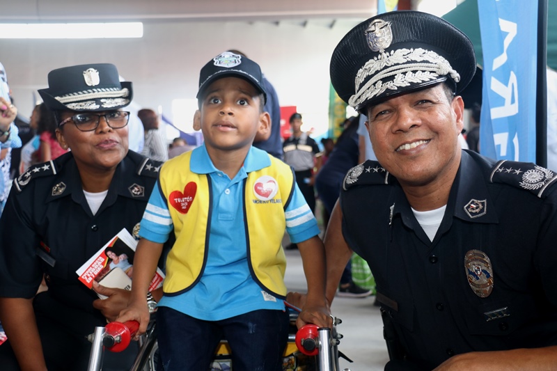Todo un éxito la primera feria interinstitucional “Salud, Deporte y Cultura”, realizada en las instalaciones de la Policía Nacional, en Ancón, donde más de 30 empresas ofrecieron sus productos y servicios a miembros juramentados, no juramentados y público en general. El Servicio Nacional de Migración, Servicio Nacional de Fronteras, Servicio de Protección institucional, el Instituto Panameño de Deportes y diversas empresas participaron con sus respectivos stands. Además de adquirir los productos de calidad a buenos precios, los asistentes disfrutaron la presentación artística de exponentes del género urbano como el Rookie, Renato, el Boza, Dj Edward Allen, la Orquesta Mayor y el conjunto típico de la Policía Nacional, así como del Servicio Nacional de Fronteras. “Con esta actividad, buscamos la integración y garantizar el bienestar de nuestras unidades, ofreciendo las condiciones necesarias para compartir en familia” expresó el director general Jorge Miranda Molina durante su visita a los diversos stand. Tuvimos la visita especial del embajador estrella de la Teletón 20-30 2019, Franchesco Velazco, quien fue recibido por el subdirector general Alexis Muñoz junto a la comisionada Alina Mariscal. Diversos grupos compuestos por niños de los programas de la Unidad Preventiva Comunitaria hicieron gala de sus talentos en bailes autóctonos de nuestro país como: la danza Emberá Emberá, Denesa y el baile Congo. En tanto los niños del equipo de Tan Soo Do, ejecutaron varios ejercicios de destreza y defensa personal de esta disciplina de las artes marciales. |