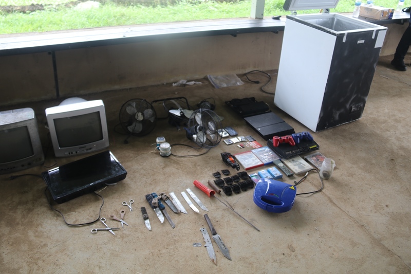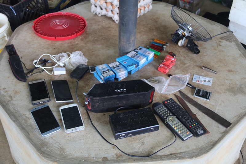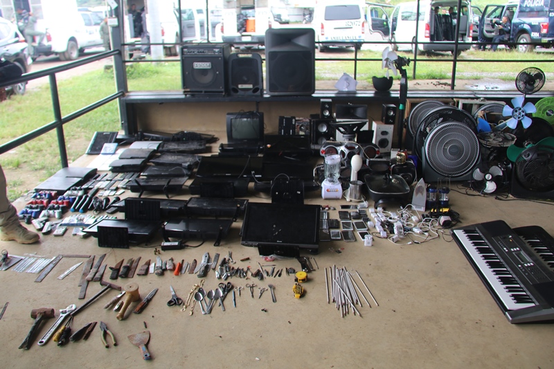 La Policía Nacional realizó un operativo para requisar los pabellones 3, 4, 5 y 6 del Centro Penitenciario La Joya, donde se incautaron cinco armas de fuego, entre estas: dos pistolas 9 milímetros y tres revólveres. En el operativo que fue supervisado por el jefe del Servicio Policial Penitenciario, comisionado Luis Carlos Villegas, se decomisaron armas punzo cortantes, celulares, herramientas, electrodomésticos, municiones, alimentos secos, entre otros artículos no permitidos; incluso fue encontrada una serpiente boa que tenían como mascota. Con esta acción se busca recuperar los espacios en los centros penitenciarios y garantizar la convivencia pacífica de los propios privados de libertad, salvaguardar la seguridad del personal administrativo y visitantes. |