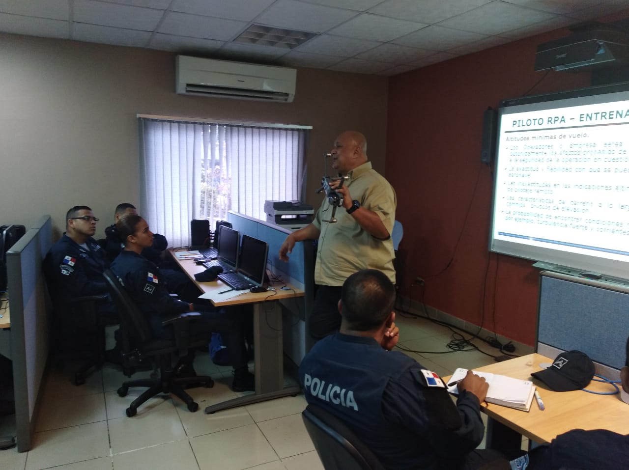 Unidades de diferentes zonas y direcciones de la Policía Nacional fueron capacitadas por instructores de la Autoridad de Aeronáutica Civil de Panamá, sobre las normas y regulaciones en el uso de los vehículos aéreos no tripulados (Dron). Los uniformados adquirieron conocimientos básicos de las clases de drones, configuración de estos aparatos, utilización por parte del piloto, el operador y el observador. Esta capacitación se llevó a cabo en el salón del Sistema Tecnológico Integral de Gestión Policial (Sitigpol) de la Dirección Nacional de Operaciones en coordinación con la Dirección Nacional de Telemática. La Policía Nacional a la vanguardia con la tecnología se prepara para utilizarla en operaciones en pro de la seguridad de la ciudadanía. |