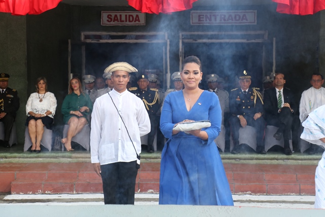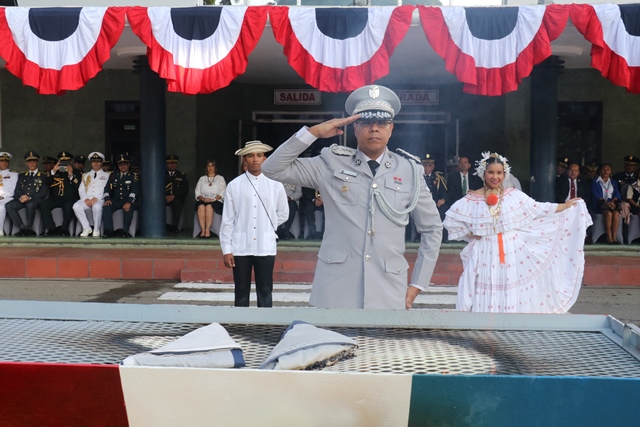 Con la solemne ceremonia de Cremación de Banderas en desuso, la Policía Nacional de Panamá rinde honor y respeto a la patria, celebrando los 116 años de vida Republicana y bienvenida a las efemérides del mes de noviembre. El director general encargado, Alexis Muñoz, resaltó que el acto de incineración del emblema nacional representa la renovación de la vitalidad de los valores nacionales; valores que debemos tener siempre y convertirlos en legado. Destacó que por primera vez en la historia de la institución, se incinera una bandera que fue ondeada en el Cerro Ancón; a su vez recordó el sacrificio de nuestros héroes y lucha por lograr nuestra independencia y soberanía. Es importante señalar que “Las banderas viejas o estropeadas no deben usarse como estandarte u otras cosas”, por lo que en conformidad con lo establecido en la Ley 34 del 15 de diciembre de 1949, la cremación de las banderas en desuso se realiza cada año. El acto se desarrolló en la sede policial de Ancón y fue encabezado por el director general encargado Alexis Muñoz, la gobernadora de la provincia de Panamá Sheyla Grajales, una representación de las Muchachas Guías, Miembros del directorio de la Fuerza Pública e invitados especiales. También participaron los estudiantes del Centros de Atención Integral a la Primera Infancia (CAIPI), con la declamación de poesías y el conjunto típico del Instituto Superior Policial. |