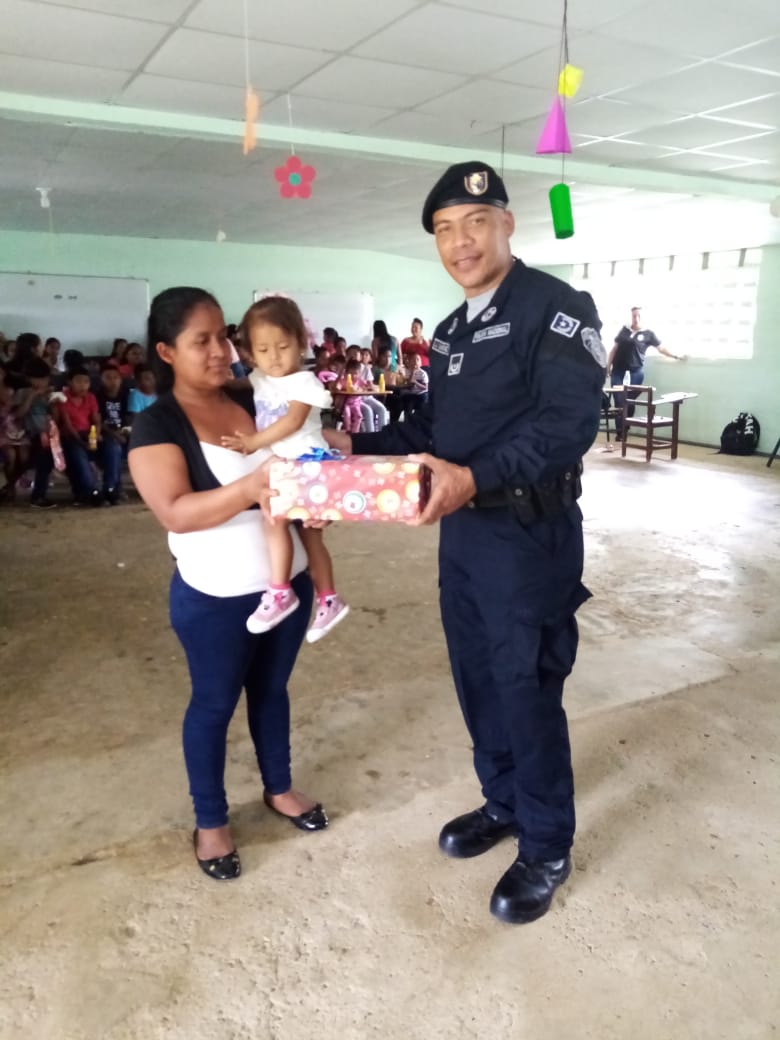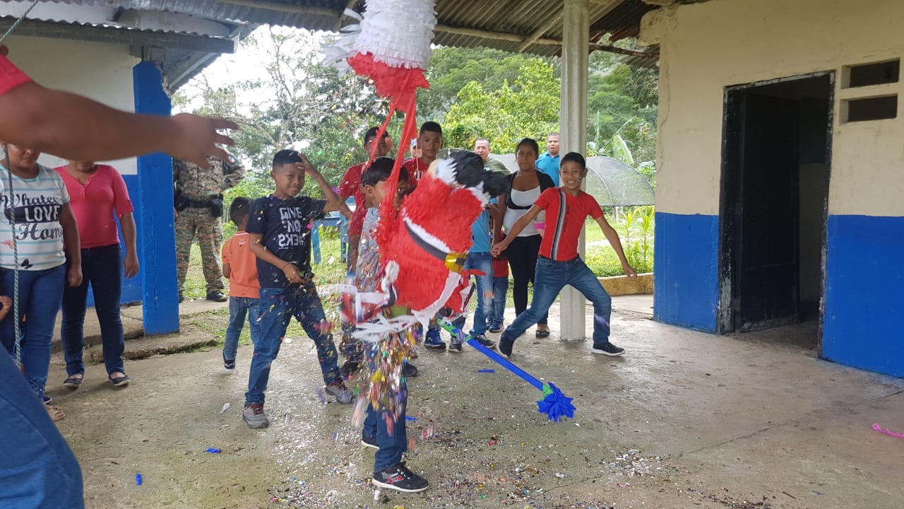 Unidades de la Fuerza Urbana de Rápida Intervención ALFA realizaron una fiesta navideña a cincuenta niños y niñas de la comunidad de Pajonal en el distrito de Penonomé, Coclé, este miércoles 18 de diciembre de 2019. “Ver el rostro de felicidad de estos pequeños es gratificante para nosotros” dijo el mayor Jorge Sánchez, jefe de operaciones de esta unidad, quien destacó que el valor de estas fiestas de fin de año que es llevar alegría y compartir en familia. Los niños disfrutaron pinta caritas, payasos, piñatas, de un delicioso pastel, regalos y música. |