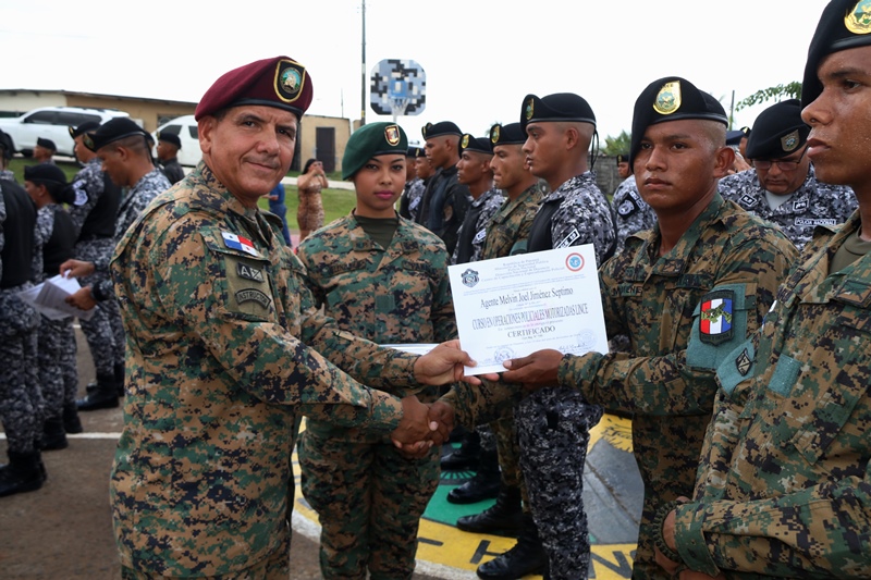 Luego de 3 meses de preparación un total de 50 unidades culminaron el curso XLII “Especializado en Operaciones Policiales Motorizadas Lince”, obteniendo el certificado en una ceremonia realizada en la sede del Servicio Policial Motorizado en ubicada en San Antonio. En el acto estuvo presente el director general de la Policía Nacional, Jorge Miranda Molina, quien destacó la preparación y profesionalismo de estos uniformados para cualquier situación que se presente en las calles. “Con estas capacitaciones fortalecemos la seguridad en las calles, enfocados en brindar un servicio de calidad a la ciudadanía”, dijo Miranda Molina. El jefe policial agregó que la labor de estas unidades “Lince” será respaldada con nuevos vehículos, que se distribuirán a nivel nacional. En la capacitación también participaron uniformados del Servicio Nacional de Fronteras y el Servicio de Protección Institucional. Adicional, se entregaron obsequios a los tres primeros puestos, a sus instructores y reconocimientos en las categorías: disciplina ejemplar, espíritu de cuerpo y mejor compañero. Por su parte, el mayor Jorge Bryant, jefe del Servicio Policial Motorizado “Lince”, indicó que en este curso se desarrollaron maniobras y destrezas, técnicas de desplazamiento, técnicas de intervención policial, entre otros. Los graduados demostraron las habilidades y destrezas adquiridas para atender con rapidez un robo y frustrarlo, durante una escenografía montada, como parte de la presentación a los miembros de directorio, familiares e invitados. |