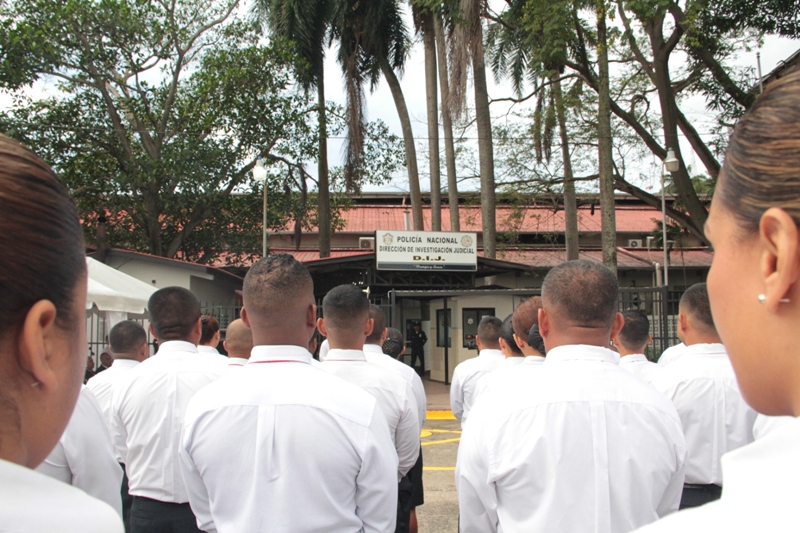 El director y subdirector general de la Policía Nacional, Jorge Miranda Molina y Alexis Muñoz Cerpa, respectivamente, fueron condecorados con la medalla de la Dirección de Investigación Judicial, en conmemoración de su 12vo. Aniversario. Le correspondió al director Nacional de Investigación Judicial, comisionado Manuel Castillo entregarles esta distinción por el alto grado de profesionalismo, liderazgo, responsabilidad y disciplina. El director general, Jorge Miranda Molina agradeció el reconocimiento al mismo tiempo que, reiteró su compromiso de trabajar por el fortalecimiento de la DIJ en su labor investigativa. "Es una institución profesional, técnica y de investigación, conformada por hombres y mujeres con habilidades, competencias y carácter para contribuir a que haya paz en nuestras calles", expresó Miranda, durante el acto cívico. Por su parte, el director de la DIJ, Manuel Castillo felicitó a todos los miembros de esta organización y les exhortó a seguir esforzándose en hacer el bien y llevar a cabo investigaciones eficientes como establece la ley. En la ceremonia participaron miembros del directorio policial, miembros juramentados y no juramentados. Cada año la DIJ reafirma el compromiso con un personal humano altamente calificado, apegado a la ley y a los principios policiales en el combate y persecución de los delitos que afectan a la ciudadanía. |