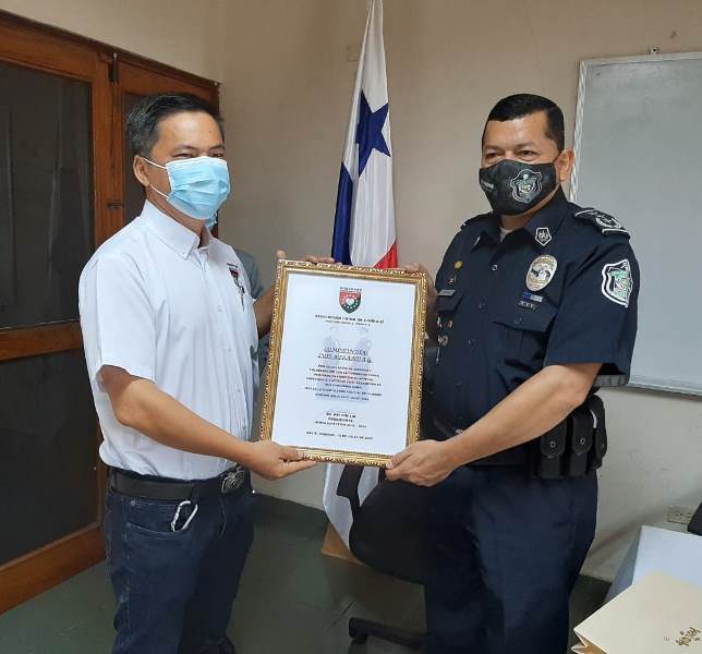 La Asociación China de Chiriquí, también le hizo entrega de un certificado de Honor al Mérito por su vocación de servicio y colaboración con la comunidad. A la par de la entrega de presentes, también se le dio la bienvenida como nuevo jefe policial al comisionado Ulises Salamanca, quien enfatizó que continuará la labor de acercamiento con todos los sectores de la provincia. |