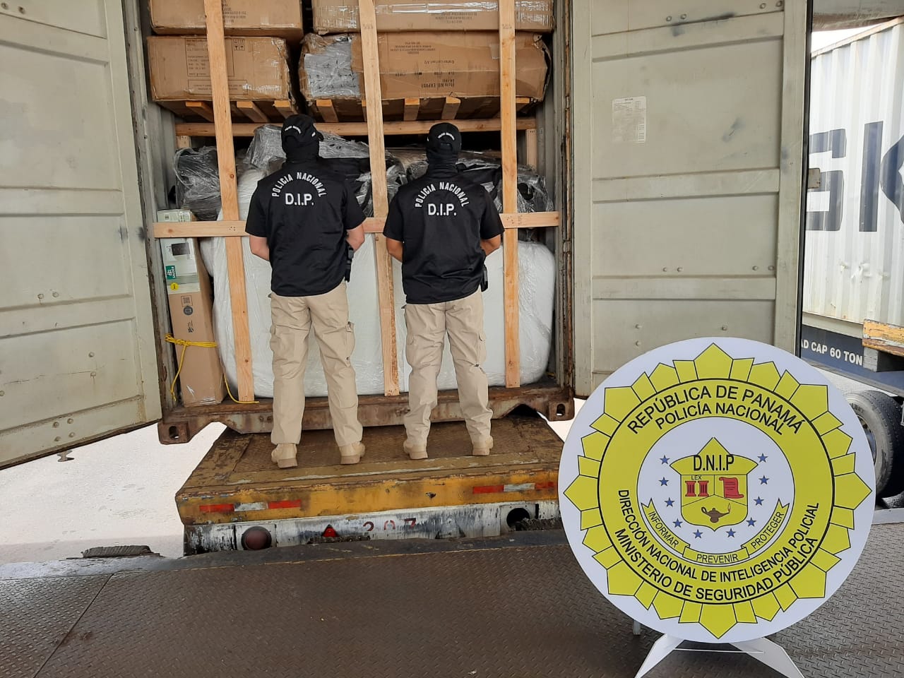 Unidades de la Dirección Nacional de Inteligencia Policial, decomisaron 350 paquetes con presunta sustancia ilícita, durante una operación realizada este jueves 13 de agosto, en coordinación con la Fiscalía de Drogas. Se presume que el cargamento tenía como destino un país Europeo. El Director de Inteligencia policial, comisionado Carlos Delgado, indicó que dicha incautación tiene un valor aproximado en el mercado de 21 millones de dólares, dando así un golpe certero al crimen organizado, de la mano del Ministerio Público, por lo que continuaran los operativos en los puertos, aeropuertos y en toda la República”. La presunta droga estaba oculta dentro de 10 maletines, con 35 paquetes cada uno, los cuales quedaron a orden de las autoridades, mientras se realizan las investigaciones para ubicar a los presuntos responsables. |