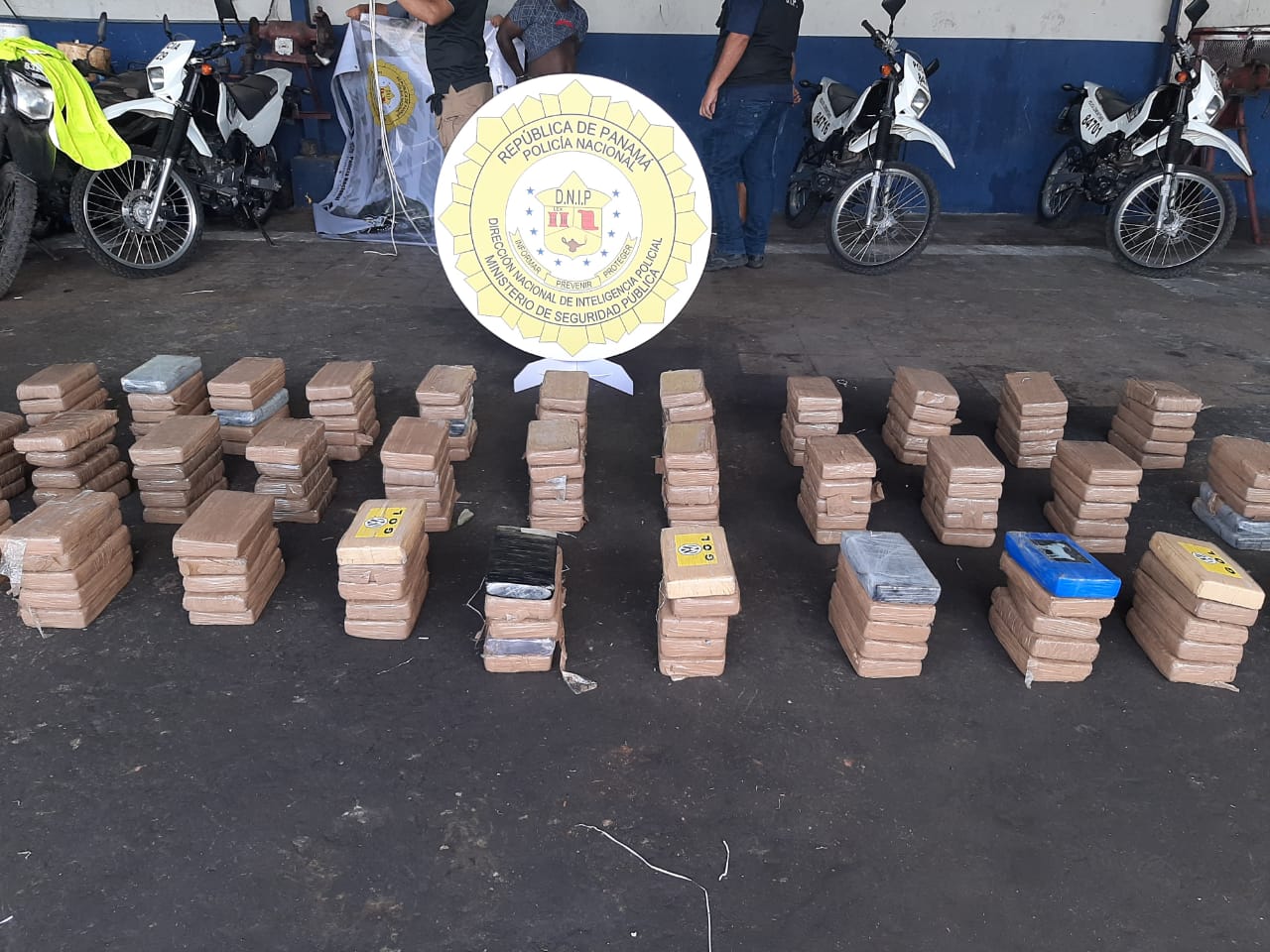 Dos hombres fueron aprehendidos tras la incautación de 161 paquetes con presunta sustancia ilícita, cuando transitaban por el sector de La Pesa, distrito de La Chorrera. Durante la operación realizada por unidades de la Dirección Nacional de Inteligencia Policial, se retuvieron dos vehículos (taxi), donde se incautaron 6 sacos, 3 en cada uno de los autos. Los aprehendidos de nacionalidad panameña, de 38 y 42 años de edad, fueron puestos a órdenes de la Fiscalía Especializada en Delitos Relacionados con Drogas de Panamá Oeste, donde continuaran las investigaciones. |