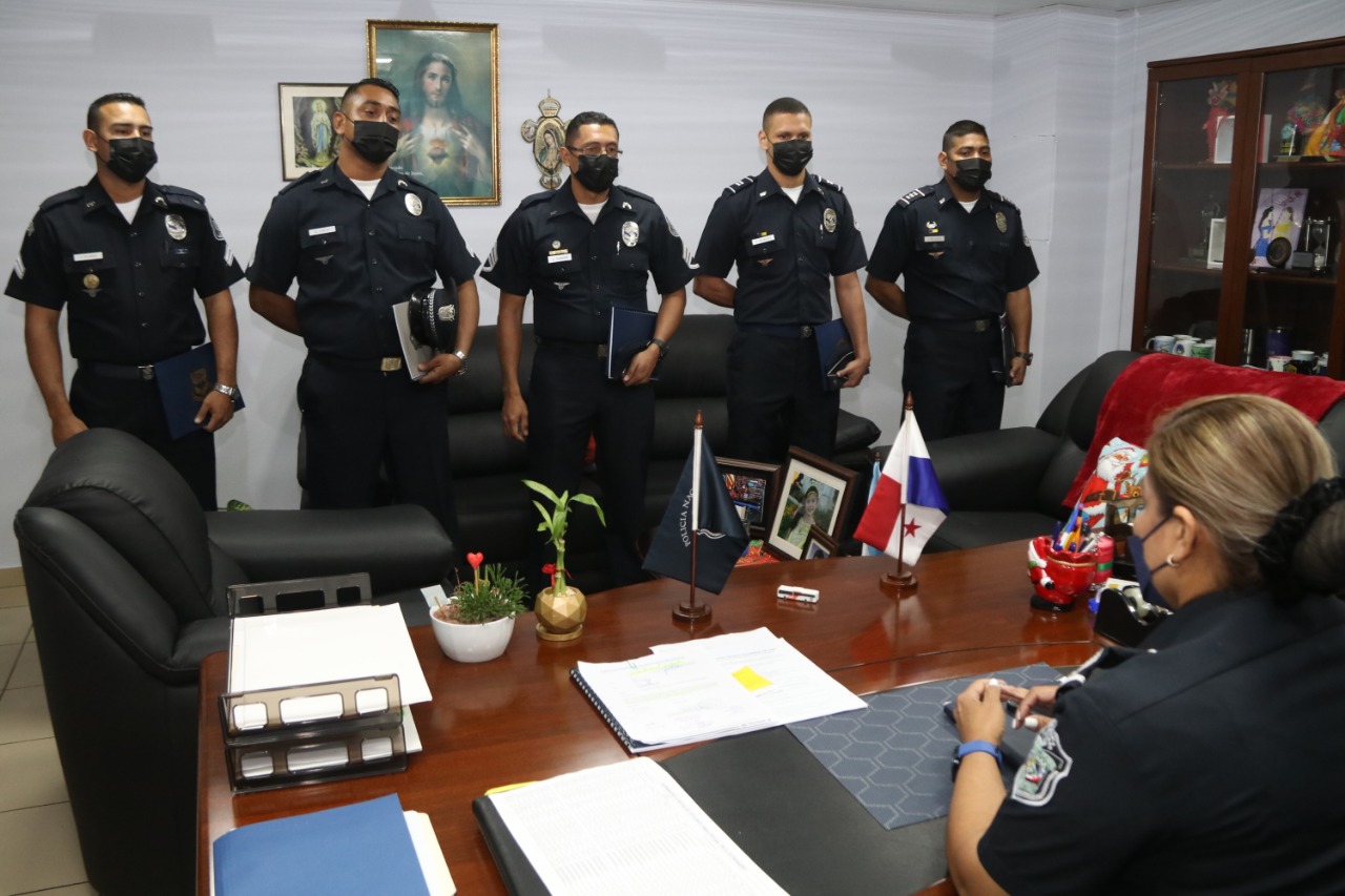 Un grupo de 5 uniformados de la Policía Nacional, culminó satisfactoriamente cursos de capacitación en diversos ámbitos profesionales en la Academia Interamericana de Las Fuerzas Aéreas en San Antonio, ubicada en la Base Aérea de Lackland, Estados Unidos. El Capitán Juan Palacios, recibió su certificado al participar en el curso Profesional de Liderazgo para Oficiales Subalternos. Por su parte, el Sargento Segundo Girón Castillo cumplió con sus 150 horas reglamentarias para adquirir su diploma del curso en Fundamentos de Inteligencia y Reconocimiento. Y el Cabo Primero Valerio Flores, obtuvo su diploma en Administración de Adiestramiento en el Trabajo (AET). Estos conocimientos adquiridos refuerzan los altos niveles de capacitación continua para el fortalecimiento institucional y brindar a la sociedad un servicio eficiente y eficaz. La Secretaria General de la Policía Nacional, Ayda Villarreal, recibió en su despacho a estas unidades, extendiéndoles sus felicitaciones por esta experiencia académica, la cual será de apoyo en la labor que realizan en la institución. |