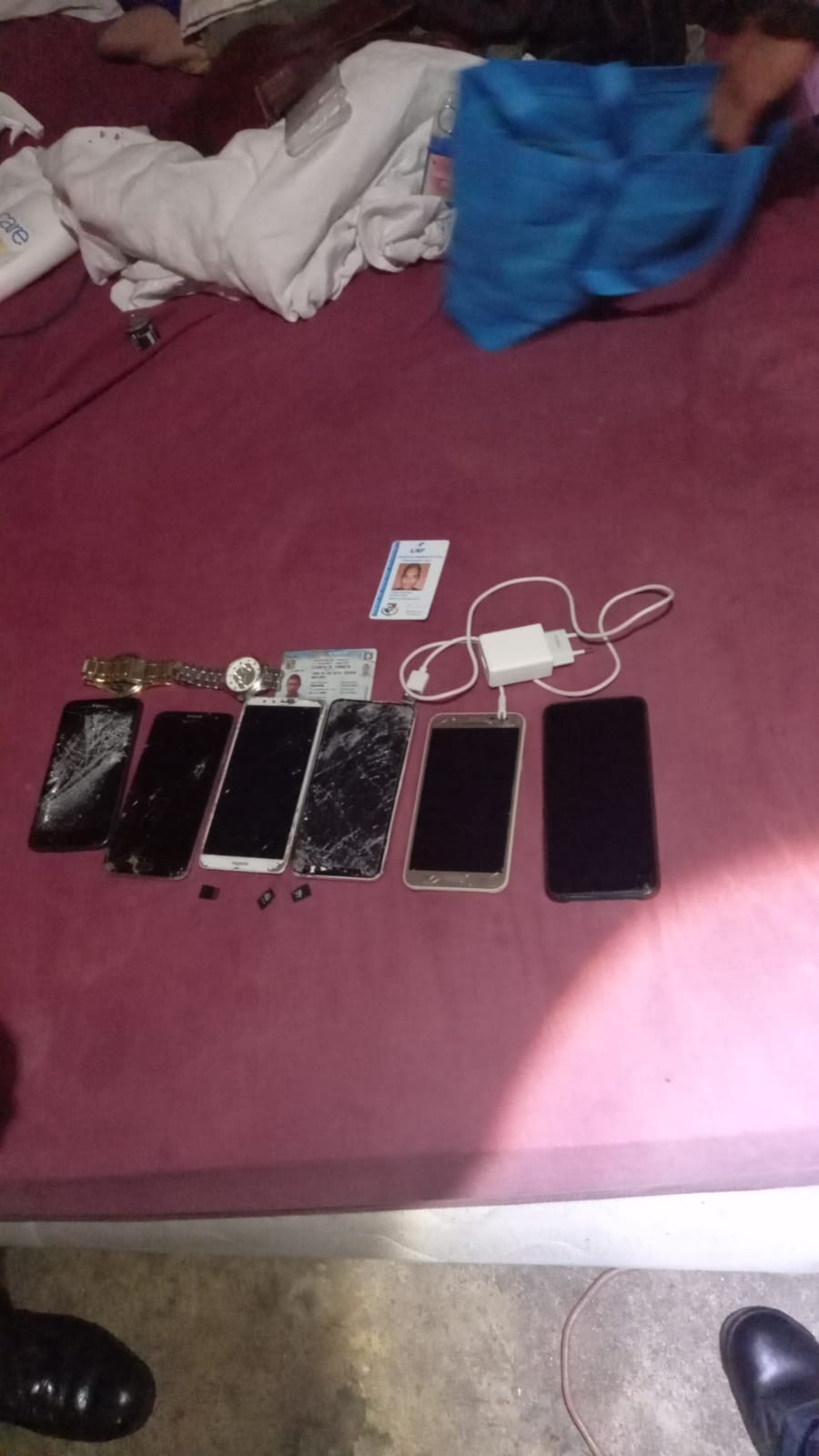 Esta madrugada la Policía Nacional, la Dij de Panamá Oeste en conjunto con el Ministerio Público realizan múltiples allanamientos en diversos sectores de Alcalde Díaz, donde ya se aprehendió a uno de los sospechosos del asalto registrado la noche de este martes 8 de febrero, en el bus expreso Panamá - La Chorrera. Estas fotografías e imágenes corresponden a los resultados que muestran documentos y celulares de las víctimas. Ocurrido los hechos rápidamente las autoridades procedieron a realizar las investigaciones y desarrollar las acciones junto al Ministerio Público, indicios necesarios para atrapar a un presunto involucrado, una persona de 25 años de edad. La Policía Nacional mantiene su acciones para atrapar y prevenir el delito. |