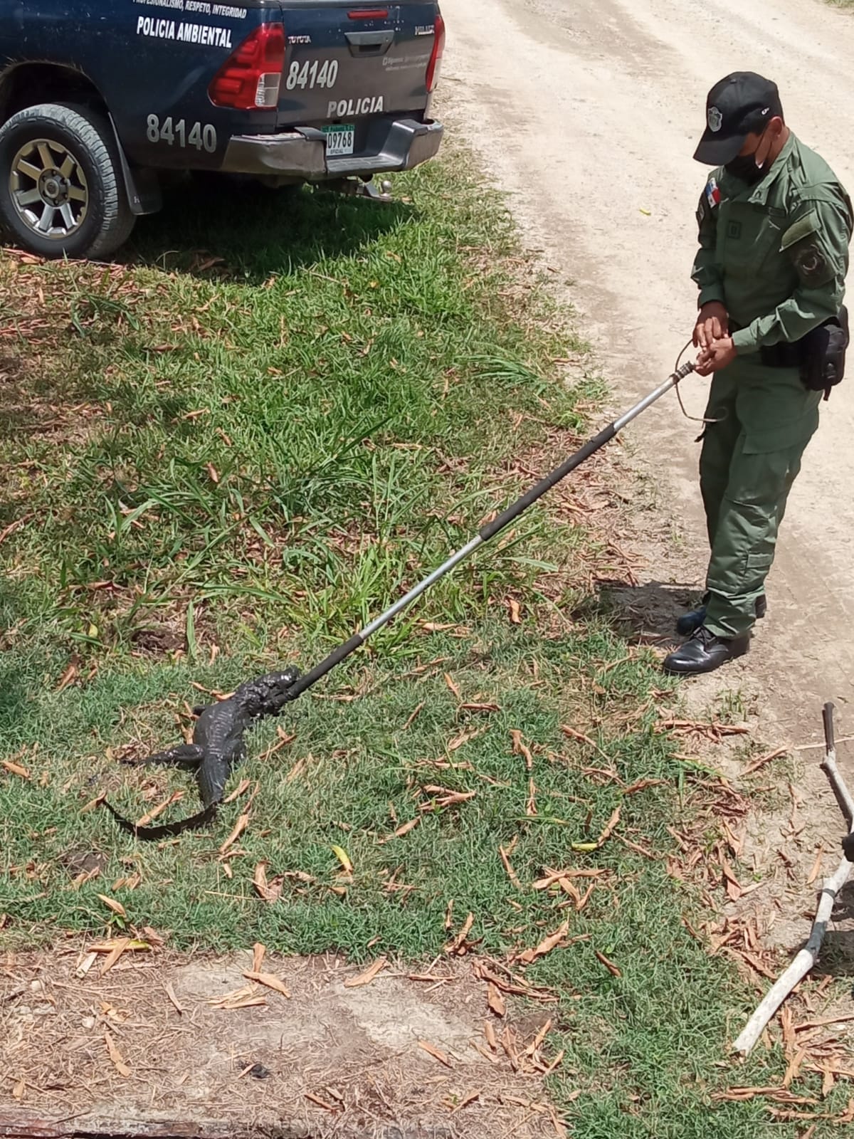 Carente de su entorno natural y atrapado en aguas contaminadas y sedimentos sólidos fue rescatado un pequeño Cocodrilo Poroso (crocodylus porosus) dentro de una cuneta, localizada en el sector de Corozal, gracias a una llamada solidaria, por parte de la ciudadanía a la Sala de Atención Ciudadana, de la Policía Ambiental Rural y Turística. Un aproximado de 30 animales de esta fauna silvestre han sido rescatados en lo que va del año 2022, y posteriormente liberados en algunos afluentes hídricos del país. El Teniente Julio González, de la Dirección Nacional Ambiental Rural, y Turística dijo que los patrullajes de rescate de animales domésticos y silvestres se desarrollan con mayor frecuencia en Panamá Centro, Juan Díaz, Pedregal, Mañanitas; así como también en Panamá Norte, Alcalde Díaz, Chilibre y en Panamá Este que incluyen las comunidades de Tocumen, Pacora y 24 Diciembre. |