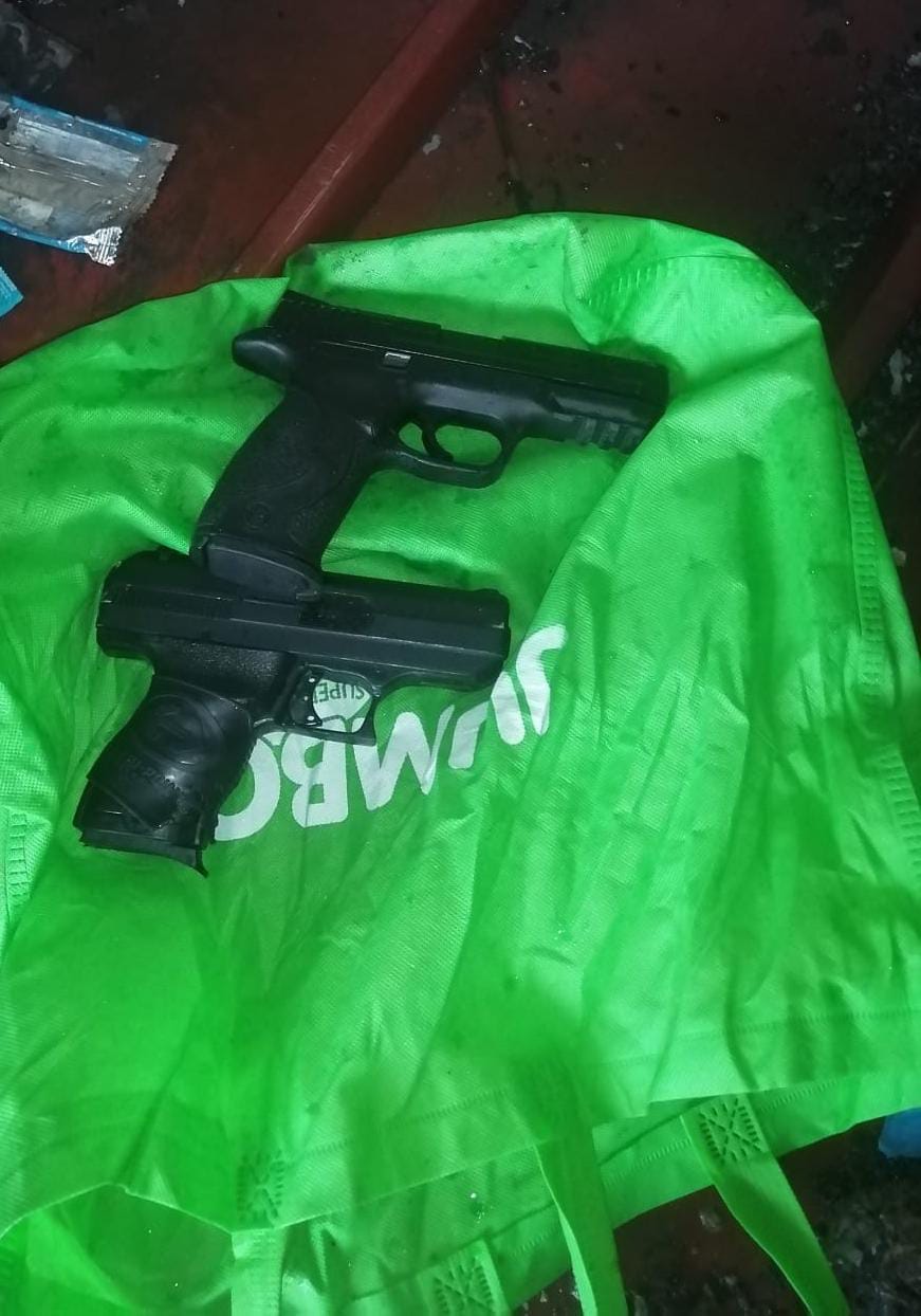 Unidades policiales dieron con el hallazgo de dos armas de fuego durante acciones policiales desplegadas en el sector de Arco Iris en el corregimiento de Cristóbal, provincia de Colón. Las armas fueron encontradas sobre una hoja de zinc envueltas con un suéter, por lo que se coordinó con la Fiscalía Regional de Atención Primaria para realizar el levantamiento de las mismas. Los operativos en el sector se mantienen a fin de garantizar la paz y tranquilidad de los moradores. |