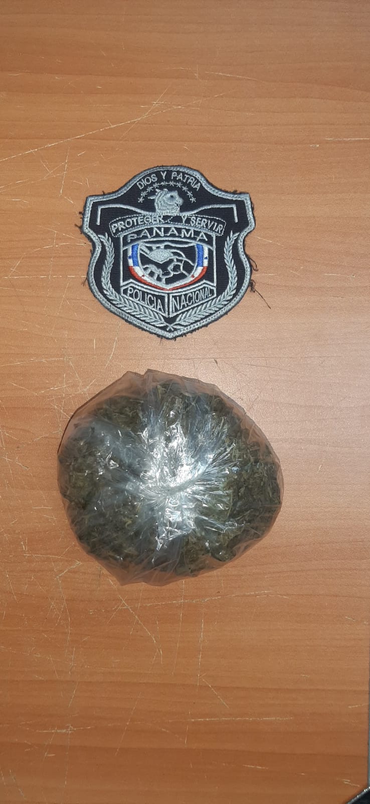 La acción policial se dio, luego de que verificaron al ciudadano y le aplican el artículo 325 del Codigo Procesal Penal, encontrándole entre sus pertenencias un envoltorio forrado con cinta adhesiva que en su interior contiene una hierba seca que se presume sea la droga marihauana.