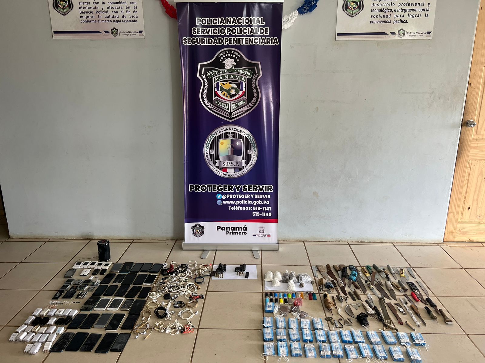 Igualmente se decomisó una pesa digital, 197 carrizos y tres envoltorios contentivas de supuestas sustancias ilícitas, así como 100 hojas de feeling, un envoltorio con hierba seca de posible marihuana, 56 objetos punzo cortantes, 31 celulares y 32 cargadores, además de 18 auriculares y una bocina inalámbrica.