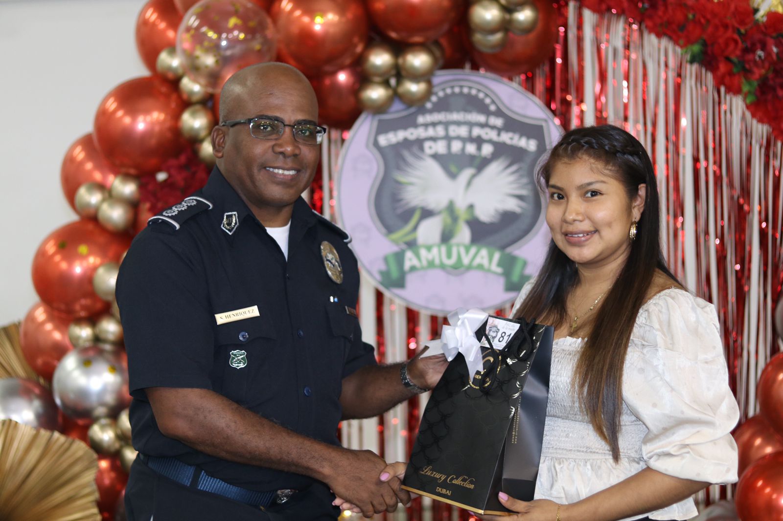 En el marco del día de Las Madres, la Asociación de Mujeres Valiosas de la Policía Nacional, Presidida por la honorable señora Claritza de Dornheim, brindó un agasajo a las esposas de Policías ejemplares. El acto contó con la presencia del Director General John Dornheim, el Subdirector Simón Henríquez, miembros del Directorio Policial y sus señoras esposas. Tras reconocer el esfuerzo que realizan los hombres de uniforme a favor de la seguridad y del país, Claritza de Dornheim, las invitó a continuar respaldando la labor de sus compañeros de vída y de la institución policíal. El evento fue amenizado por el cantante de música típica Alejandro Torres y los trovadores Elio Aizpurua, José Pacheco, Agustín Samaniego, Orestes Hernández y la guitarra de Sergio Cortéz. Igualmente se repartieron obsequios entre las madres que asistieron al evento. |