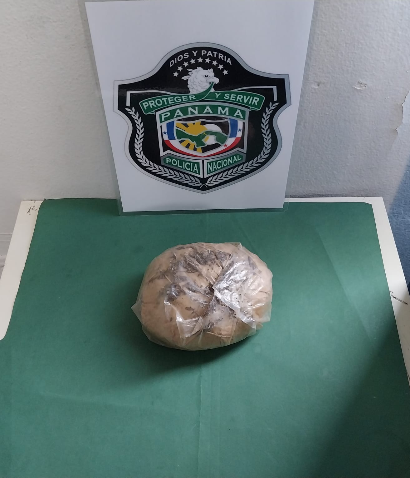 La Policía Nacional a través de la Dirección Nacional Antidrogas y las Unidades Caninas dan con el hallazgo de un envoltorio con contentivos de hierba seca, que se presume sea la droga conocida como marihuana, la cual permanecía enterrada y forrada con cinta adhesiva de color crema.