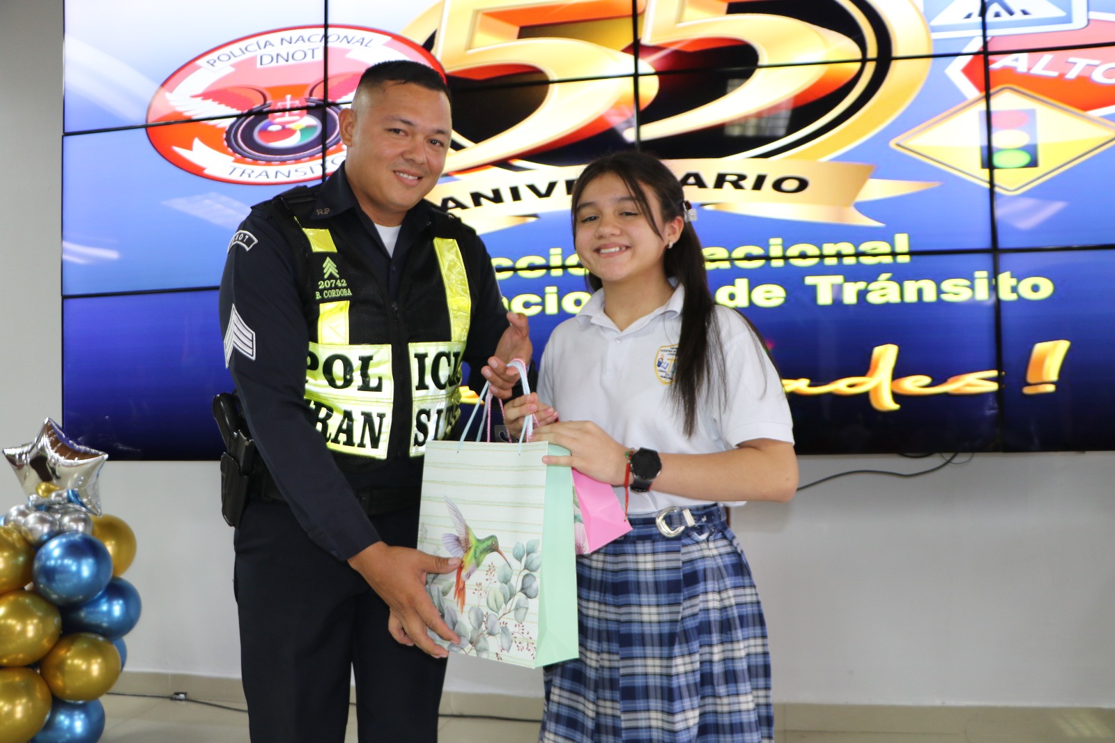 La Dirección Nacional de Operaciones del Tránsito realizó un concurso de oratoria en la Sede de la Policía Nacional en Ancón en el marco de la celebración de sus 55 Aniversario, donde participaron varios planteles educativos a nivel nacional. El “Cruce de peatones” fue el tema a exponer por los estudiantes de diferentes colegios donde demostraron sus habilidades y destrezas ante un jurado de expertos en oratoria, resultando ganadora la estudiante Rayehen Amarath Carrasco Juárez, del Colegio Nuestra Señora Virgen de Lourdes, Sabanita provincia de Colón. El subcomisionado Luis Hernández, jefe de la DNOT, hizo énfasis en la campaña de la debida utilización de los pasos peatonales ya que el 35% de las víctimas por accidentes de tránsito son por imprudencia de los peatones. La Dirección Nacional de Operaciones Tránsito continúa con estas campañas de prevención para la debida utilización de los pasos de cebra o cruces peatonales designados y de esta manera evitar más víctimas fatales. |