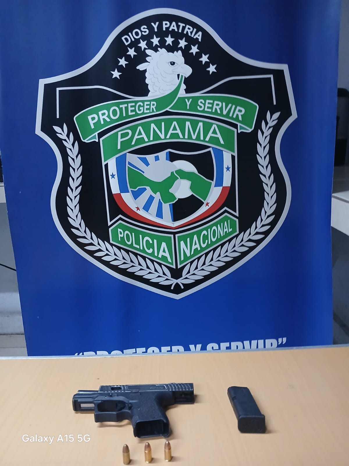 Unidades de la Policía Nacional aprehenden a una persona de 41 años, en posesión ilícita de un arma de fuego tras ser detectado a través de las cámaras de videovigilancia del sector de Panamá Norte.