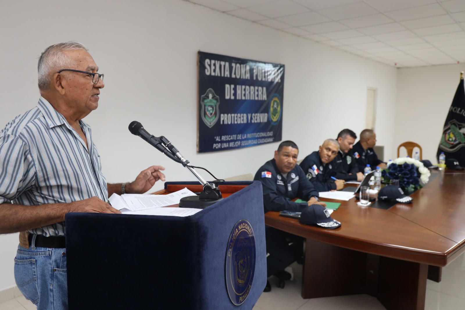 En un ambiente de armonía se llevó a cabo una reunión de trabajo con la Asociación de reservistas de las provincias de Herrera, Chiriquí, Veraguas y Panamá, entre otras, durante el encuentro se le dio continuidad a los trámites de prestaciones laborales y otros temas establecidos en el bienestar policial de los jubilados. El Director General de la Policía Nacional, Jaime Fernández les dio una calurosa bienvenida y reiteró su compromiso de apoyarlos y darle cumplimiento a todos sus beneficios que les corresponde como jubilados de la institución policial. Por su parte, la Dirección Nacional de Recursos Humanos y los asistentes establecieron planes de trabajo con la misión de brindarles seguimientos a todas sus solicitudes. |