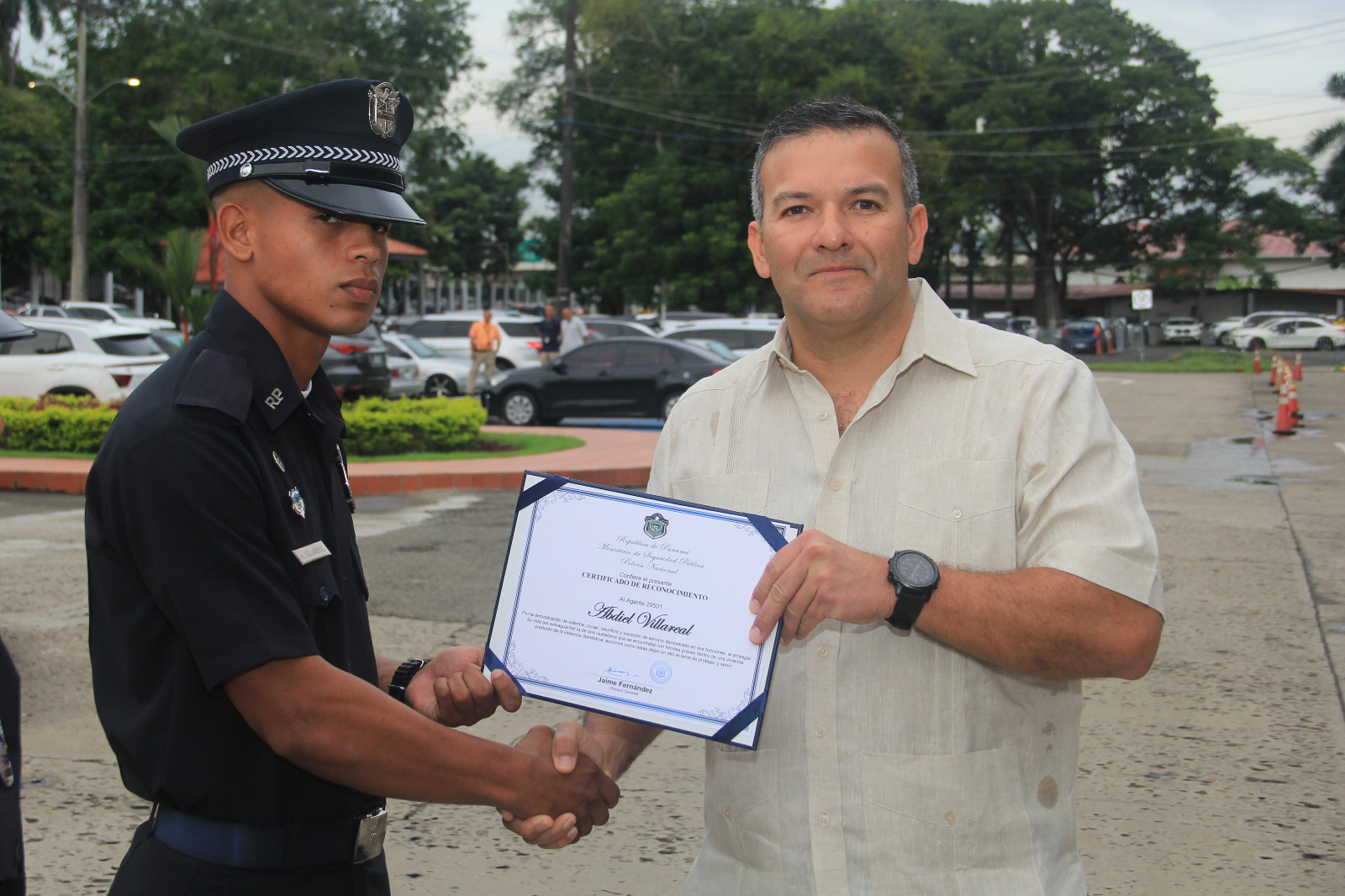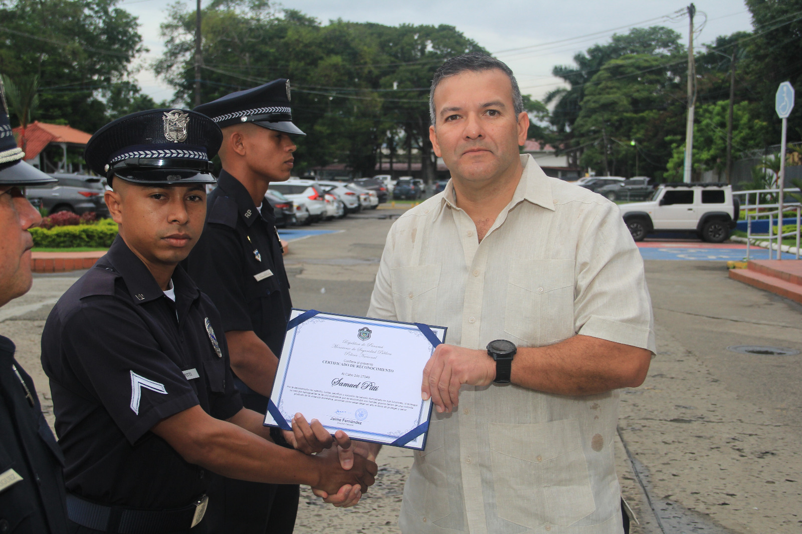En un emotivo acto cívico realizado en las instalaciones de la Policía Nacional, en la sede de Ancón, el Director General de la institución, Jaime Fernández rindió un merecido homenaje a tres unidades policiales que, con su valiente y rápida intervención, salvaron la vida de una mujer que estuvo a punto de fallecer a causa de violencia doméstica, en el sector de Nuevo Arraiján. El reconocimiento se llevó a cabo ante la presencia de altos mandos policiales, y compañeros de los uniformados, quienes aplaudieron la labor heroica de los tres policías. "Este acto es un testimonio del compromiso y valentía que nuestros agentes demuestran día a día en la protección de los ciudadanos", expresó el Director General de la Policía Nacional, Jaime Fernández durante su discurso. "Estos tres héroes representan el verdadero espíritu de servicio de la Policía Nacional", añadió. Las unidades policiales, Teniente Alfonso Rodríguez, Cabo 2do. Samuel Pitty y, el Agente Andiel Villarreal respondieron con prontitud a una llamada de emergencia en la que se reportaba un caso grave de violencia doméstica. Al llegar al lugar, encontraron a la víctima en estado crítico, brindándole los primeros auxilios y trasladándola de inmediato al hospital, donde recibió la atención médica necesaria para salvar su vida. Este reconocimiento no solo exalta la actuación de los hombres de uniforme, sino que también subraya la importancia de denunciar y combatir la violencia doméstica. |