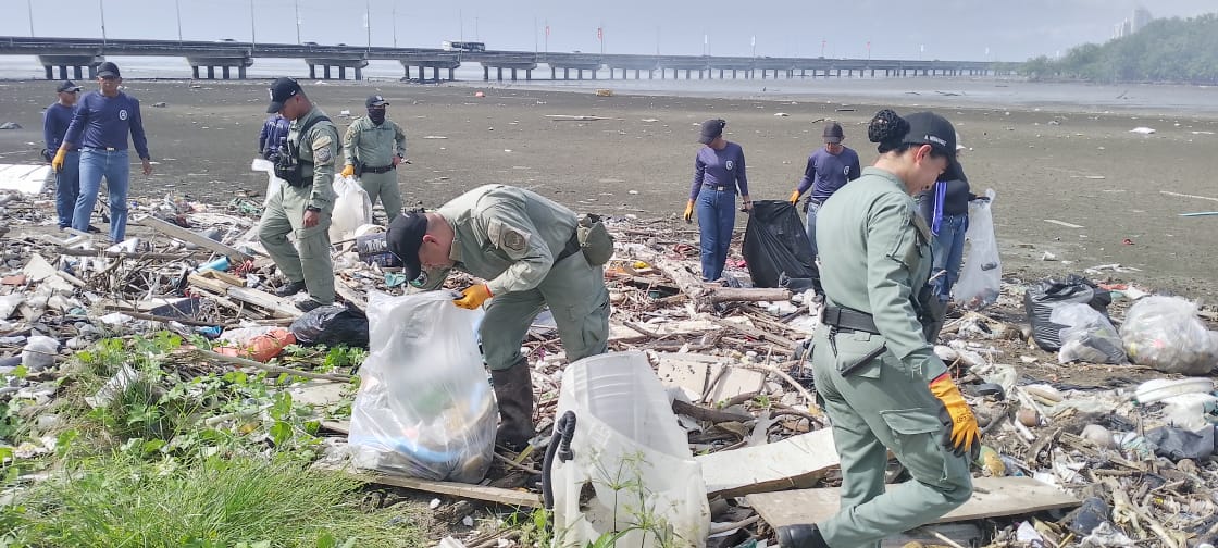 Más de mil unidades de la Policía Nacional participan en la jornada de limpieza por las playas, costas y demás afluentes hidrícos, localizados en diferentes provincias del país, con la misión de salvaguardar y proteger la conservación de los océanos y el ecosistema ecológico. El Director General de la Policía Nacional, Jaime Fernández junto a las autoridades de Ministerio de Mi Ambiental y la Autoridad de Aseo estuvieron presente en estas actividades de limpieza junto a las unidades policiales en las costas de la Bahía de Panamá, exhortando a la ciudadanía en general para preservar la biodiversidad en las playas y en los humedales. La Policía Nacional continúa garantizando la protección del ambiente, y al pendiente de los riesgos ecológicos vinculados a los desechos sólidos lanzados a las playas. |