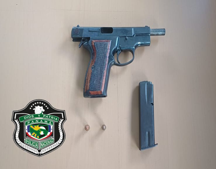 La aprehensión se registra cuando unidades en su recorrido preventivo en calle Colón, logran observar a un sujeto en actitud sospechosa, que al notar la presencia policial salió en precipitada huida, al darle captura el mismo, aplicando el artículo 325 se le ubica en la parte frontal de la pretina un arma de fuego, tipo pistola calibre 9 mm, un proveedor y municiones.