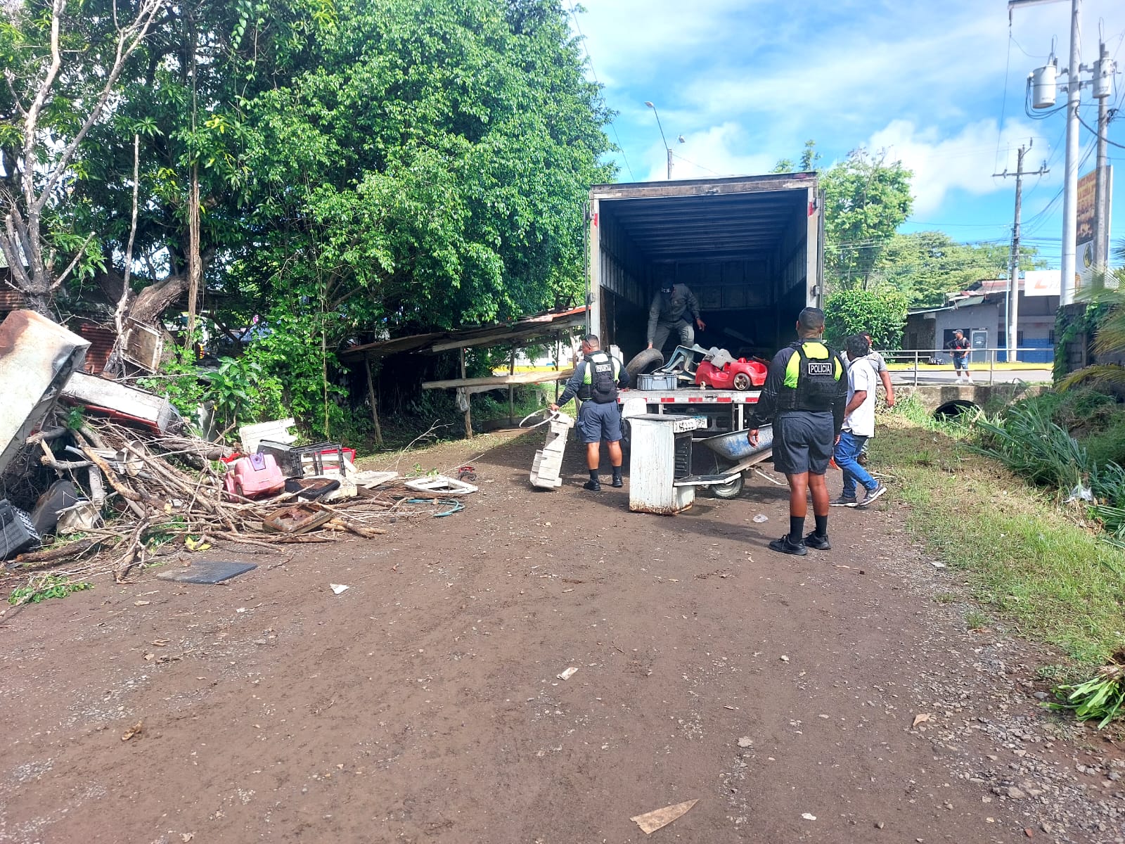 Como parte de esta labor social de ayuda comunitaria, los uniformados han llevado a cabo la remoción de escombros, incluyendo electrodomésticos dañados como neveras, colchones, sillones, lavadoras y estufas, entre otros enseres. Además, han realizado trabajos de limpieza en las residencias y áreas afectadas, contribuyendo a la recuperación y bienestar de las familias perjudicadas por las inundaciones.