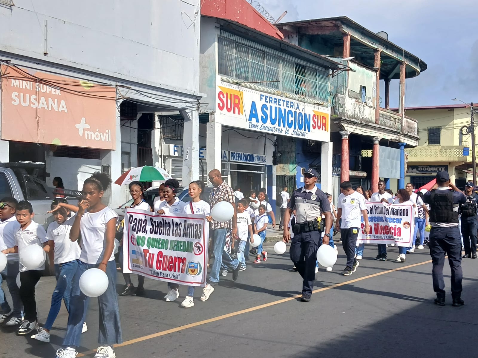 El subcomisionado Javier Batista, ejecutivo de la Zona Policial de Colón, indicó que en cumplimiento del eje de Seguridad Ciudadana, que contempla el Plan Firmeza, se realiza esta marcha por la Paz, con la finalidad de continuar con la sana convivencia que se ha mantenido en estas semanas, donde no se han registrado hechos de impacto.