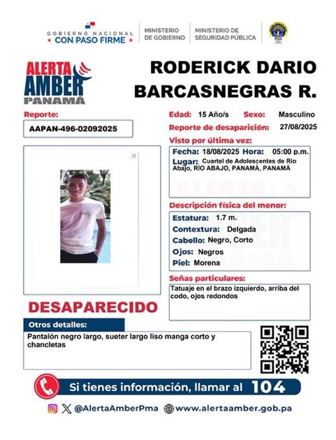 Al verificar su identidad, las autoridades confirmaron que mantenía una Alerta Amber vigente, con reporte emitido el 27 de agosto de 2025. El menor fue trasladado a la Sala de Atención Ciudadana de Niñez para los trámites correspondientes y el restablecimiento de sus derechos.